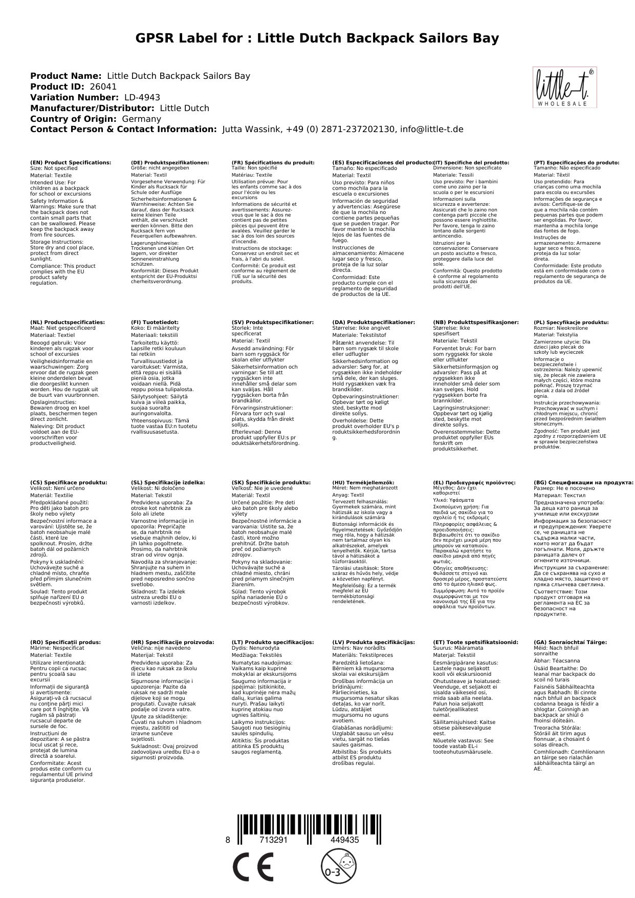 Stellen Sie eine Frage, um mehr über das Produkt zu erfahrenLittle Dutch Rucksack Sailors Bay