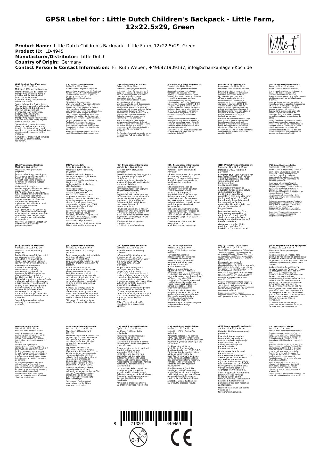 Der Little Farm Rucksack ist der ideale Begleiter für Kindergarten, Schule und Familienausflüge. Mit seinem fröhlichen Design und den praktischen Funktionen begeistert er Kinder und Eltern gleichermaßen. Besonders hervorzuheben ist die umweltfreundliche Herstellung aus 10 recycelten PET-Flaschen.