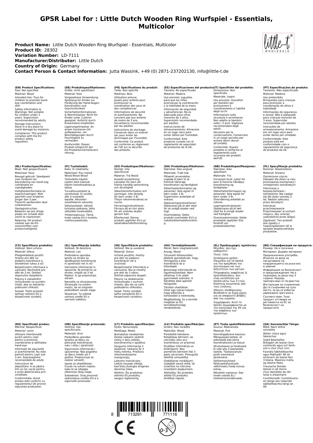 - Ist das Spielzeug sicher für Kinder? Ja, das Holzring-Wurfspiel von Little Dutch ist aus hochwertigen Materialien hergestellt und entspricht allen europäischen Sicherheitsstandards für Spielzeug.