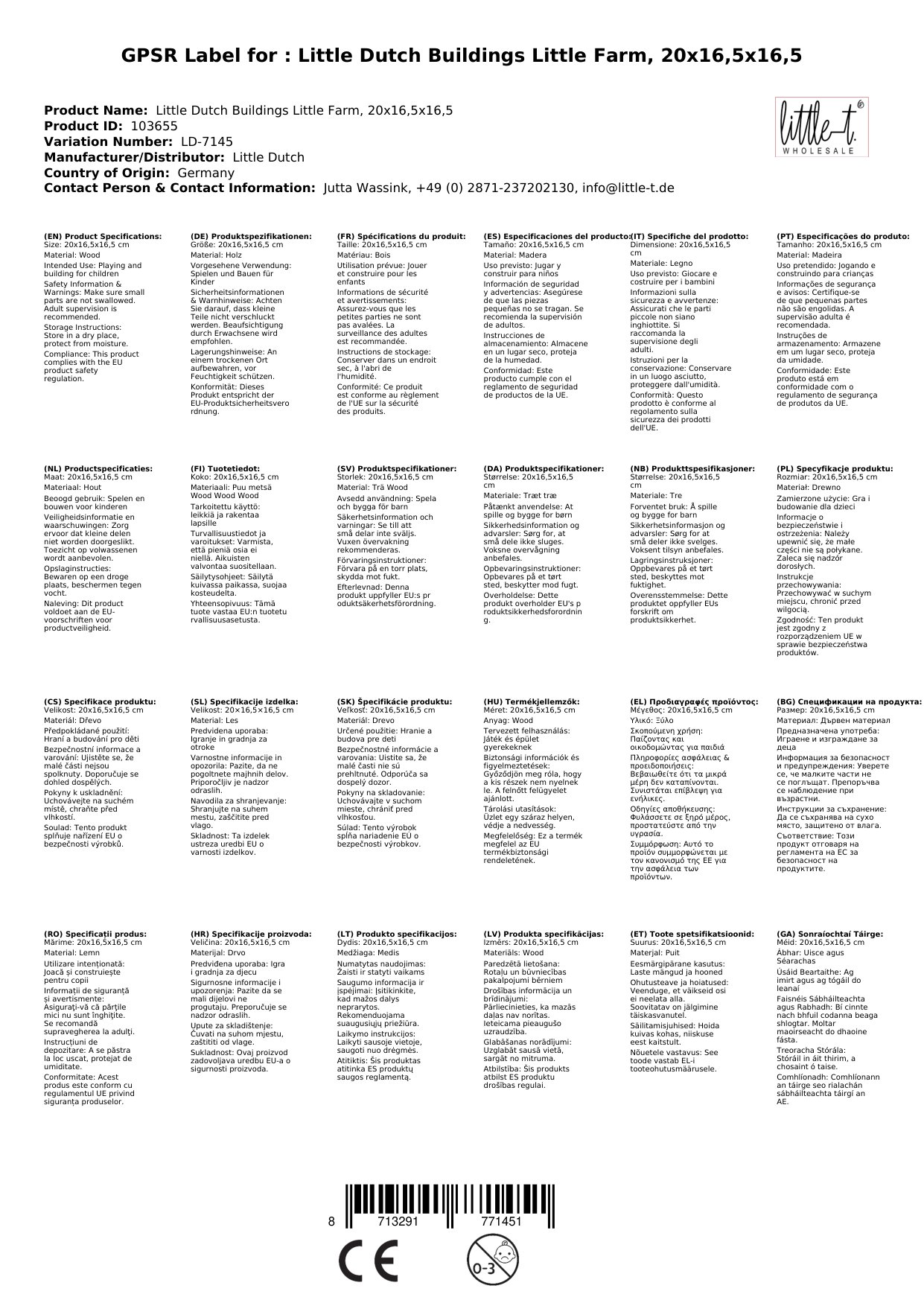 Stellen Sie eine Frage, um mehr über das Produkt zu erfahrenLittle Dutch Bausteine Little Farm, 20x16,5x16,5