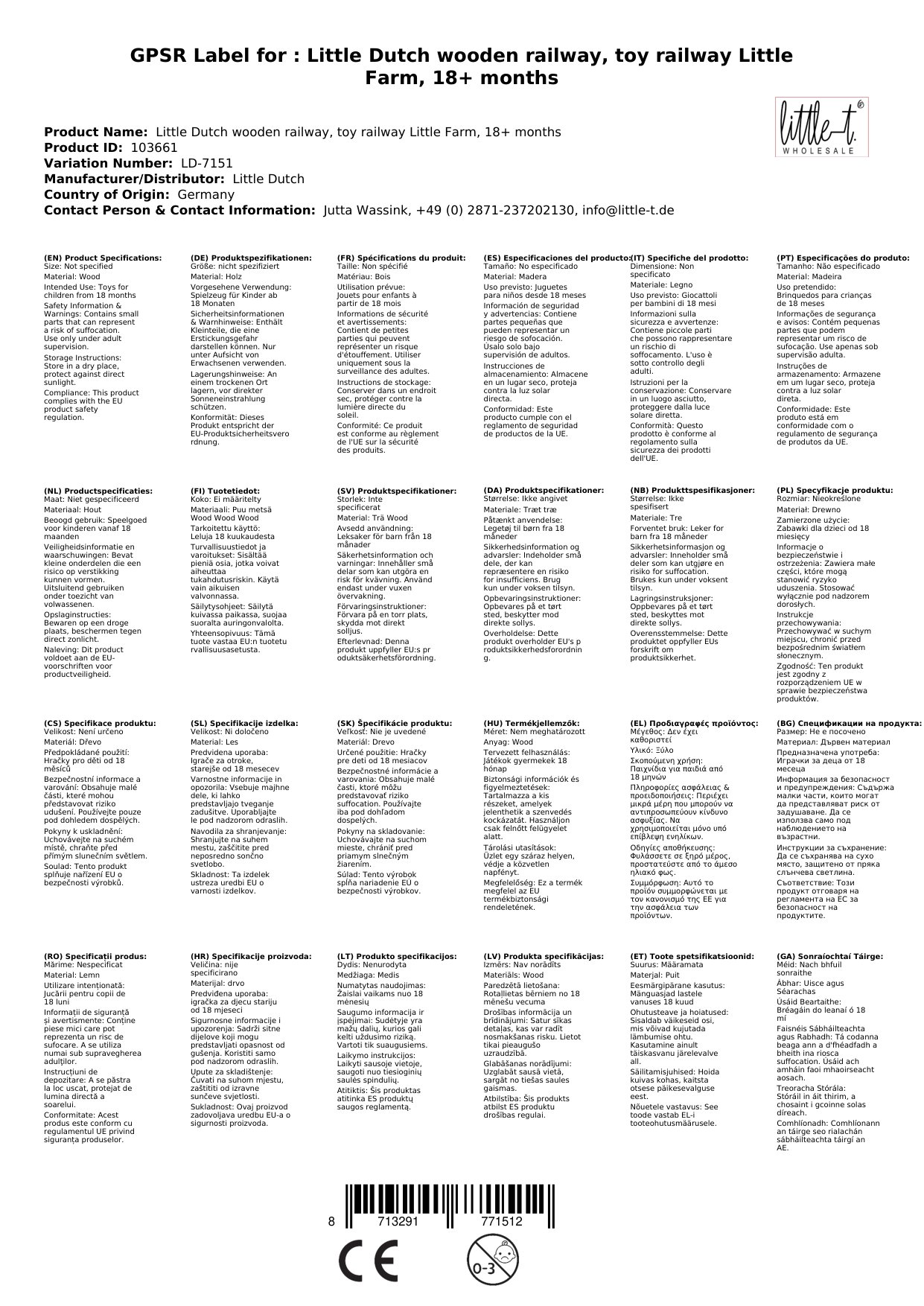Die Little Dutch Holzeisenbahn entspricht den höchsten Sicherheitsstandards und wurde aus robustem, langlebigem Holz gefertigt. Damit ist sie ein Spielzeug, an dem Kinder lange Freude haben werden.