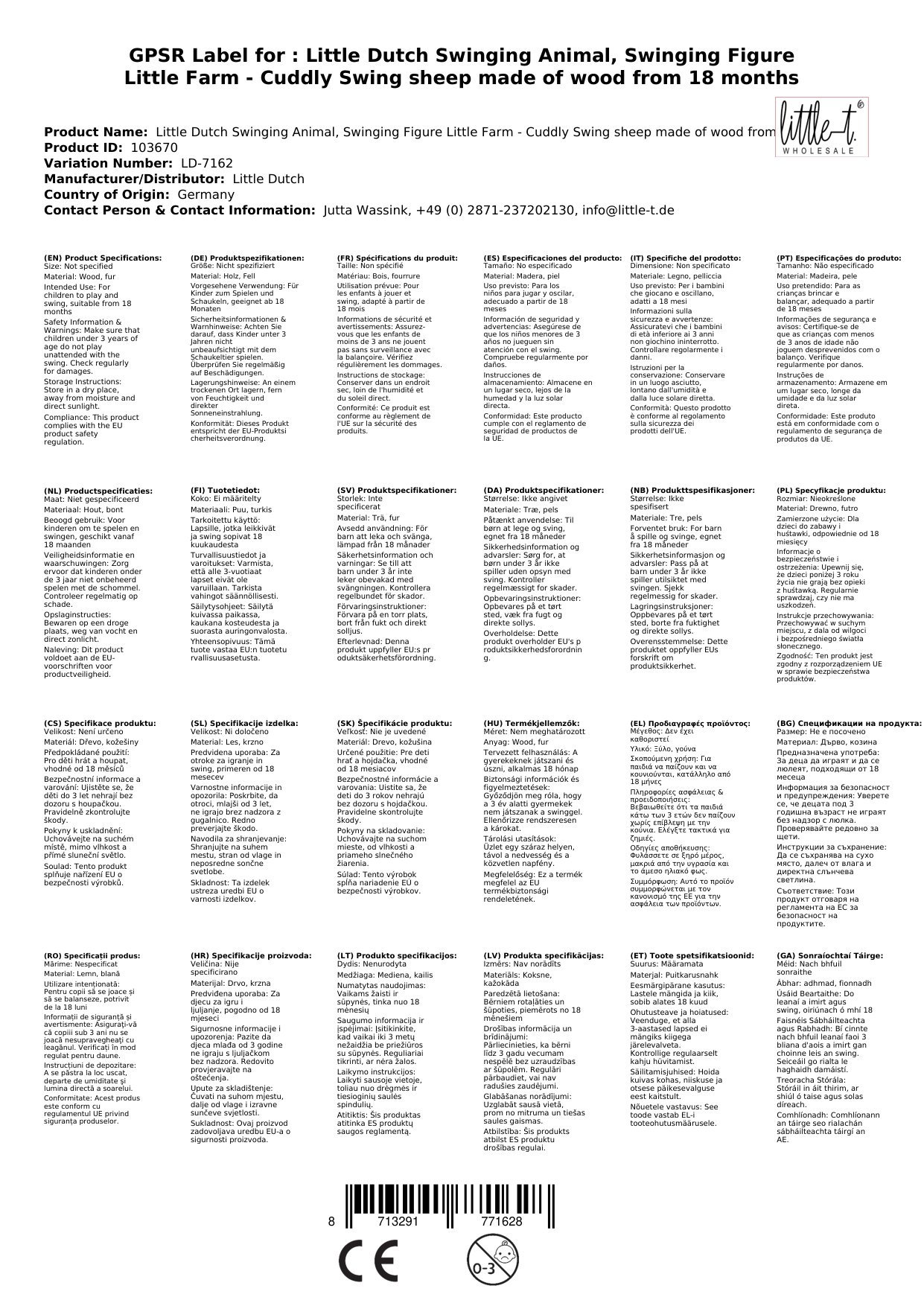 Das Schaukelschaf ist für Kinder ab 18 Monaten geeignet und kann als Geschenk für Geburtstage, Weihnachten oder andere besondere Anlässe dienen. Es ist einfach zu montieren und wird mit einer Waschanleitung geliefert, die besagt, dass die Oberfläche einfach mit einem feuchten Tuch abgewischt werden kann.