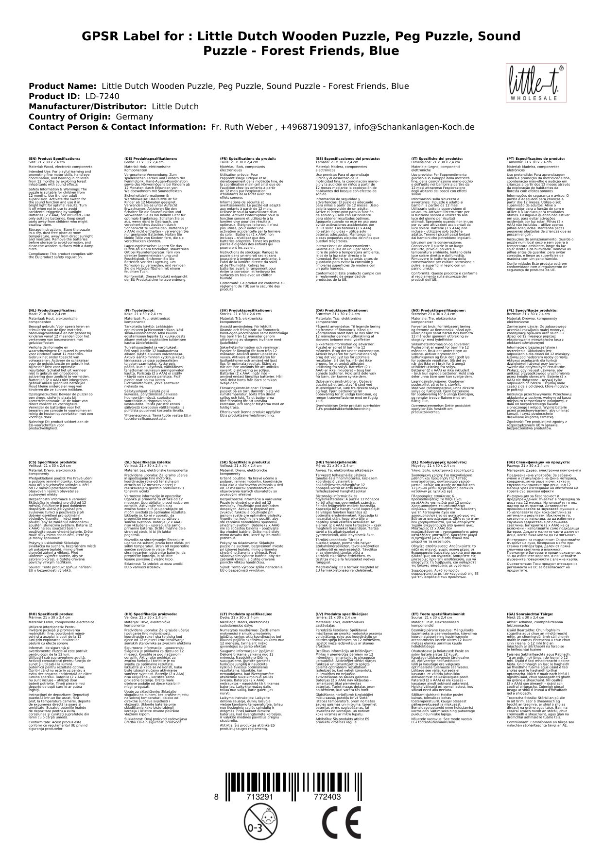 Stellen Sie eine Frage, um mehr über das Produkt zu erfahrenLittle Dutch Holzpuzzle, Steckpuzzle, Sound Puzzle - Forest Friends, Blau