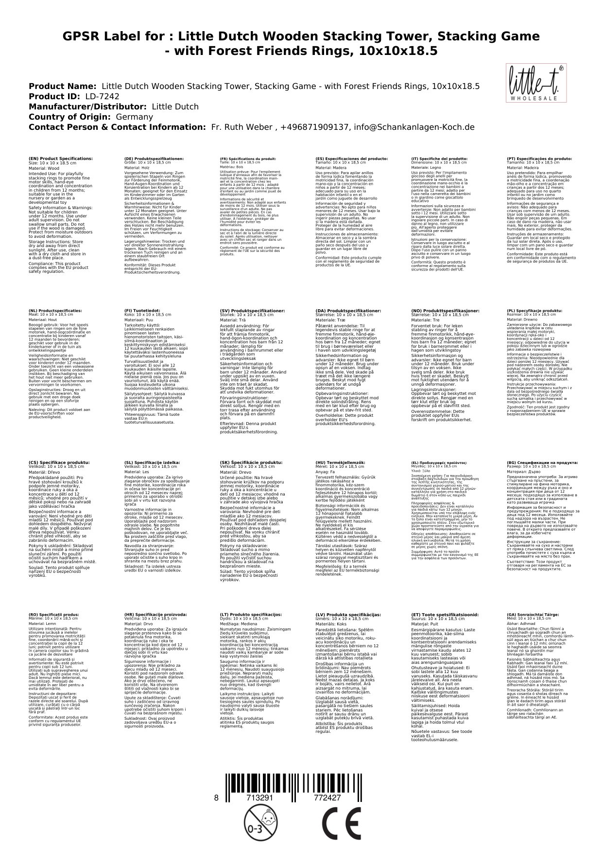 Stellen Sie eine Frage, um mehr über das Produkt zu erfahrenLittle Dutch Stapelturm Holz, Stapelspiel - mit Ringen Forest Friends, 10x10x18,5