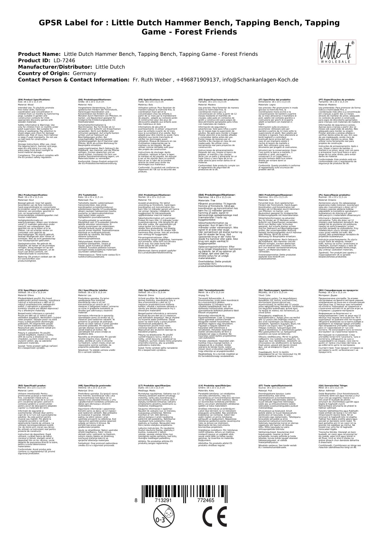 Stellen Sie eine Frage, um mehr über das Produkt zu erfahrenLittle Dutch Hammerbank, Klopfbank, Klopfspiel - Forest Friends