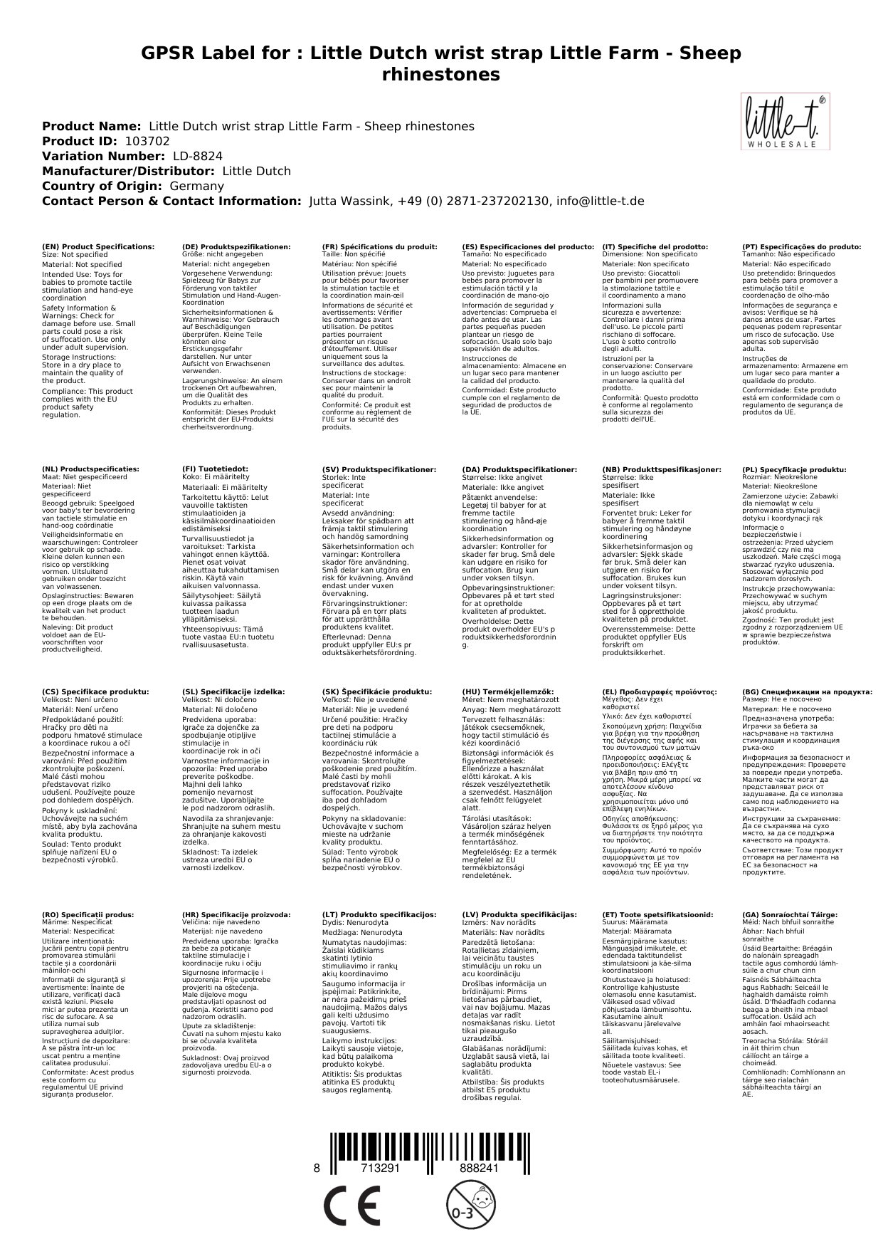 Unser Little Dutch Handgelenkrassel Little Farm - Schaf Rasselarmband & Greifelementen entspricht den EN-71-1-2-3 Sicherheitsstandards und ist somit sicher für die Benutzung durch Babys. Es ist ein spaßiges Spielzeug für Kinder ab 0 Monaten und fördert die Entwicklung der auditiven, visuellen und taktilen Fähigkeiten.