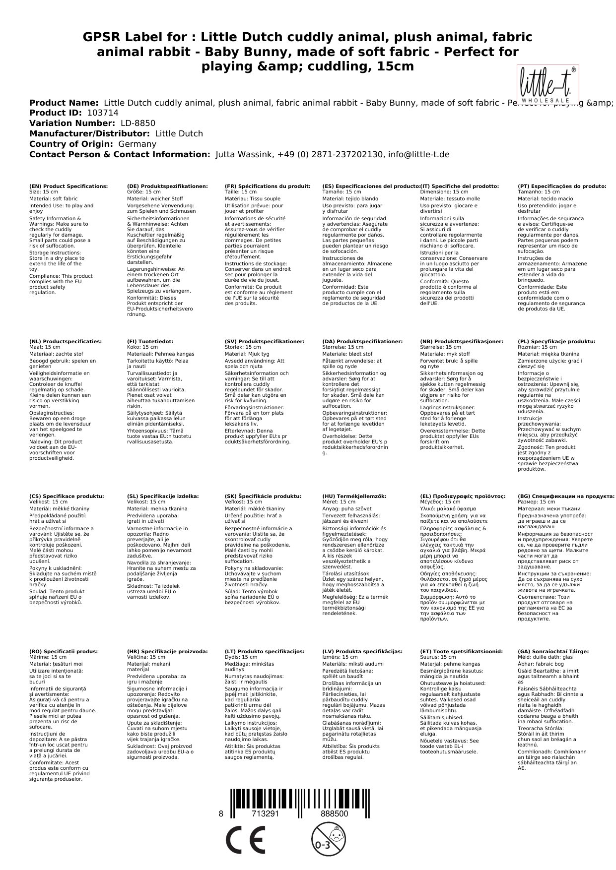 - Mit einer Größe von 15cm ist das Baby Bunny der ideale Begleiter für Ihr Kind, egal wo Sie unterwegs sind.