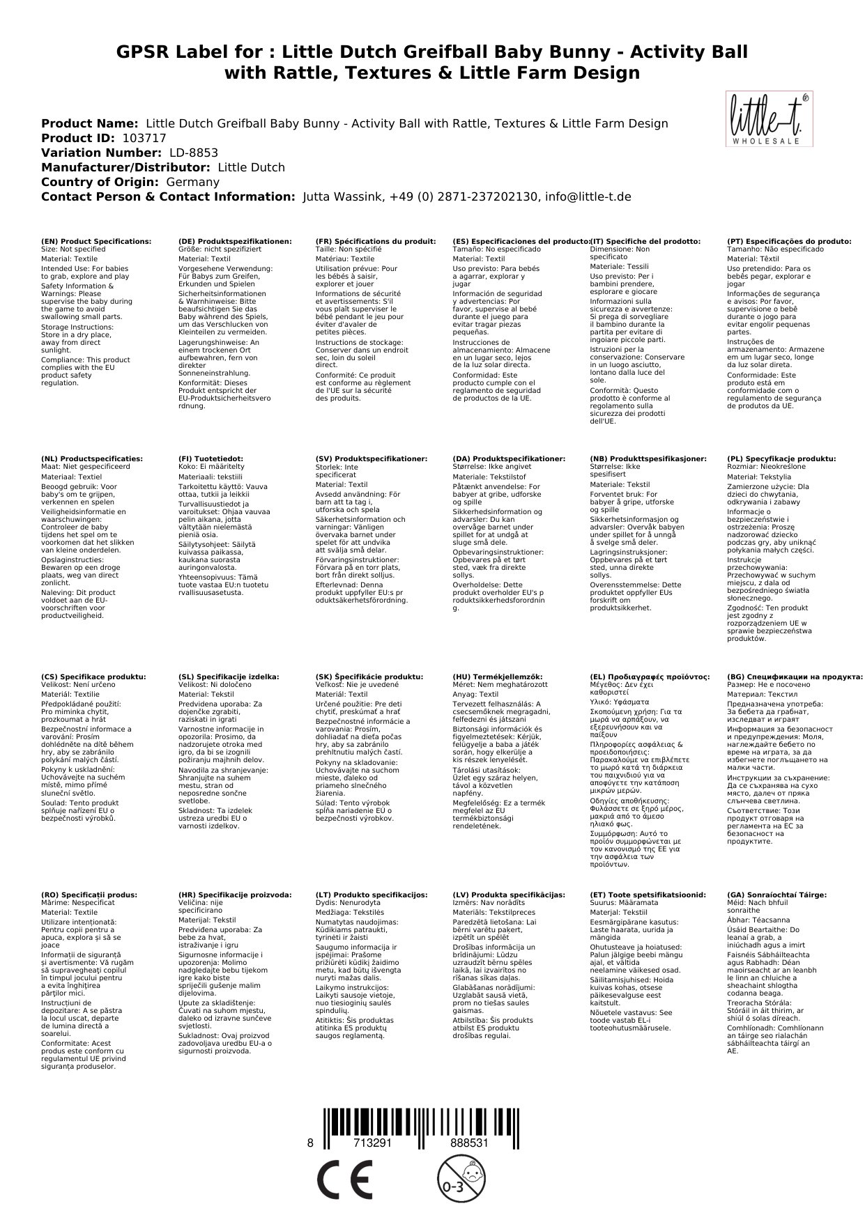 Stellen Sie eine Frage, um mehr über das Produkt zu erfahrenLittle Dutch Greifball Baby Bunny - Activity Ball mit Rassel, Texturen & Little Farm Design