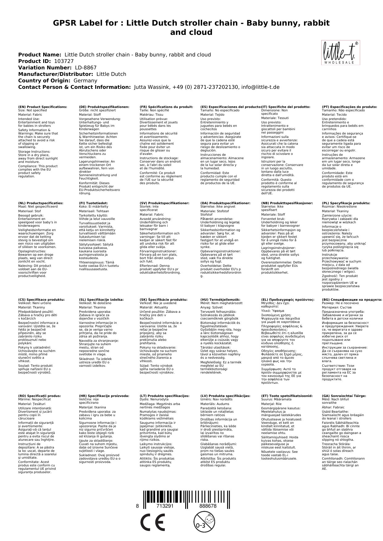 Stellen Sie eine Frage, um mehr über das Produkt zu erfahrenLittle Dutch Kinderwagenkette - Baby bunny, Hase und Wolke: Unterhaltsames Spielzeug für unterwegs