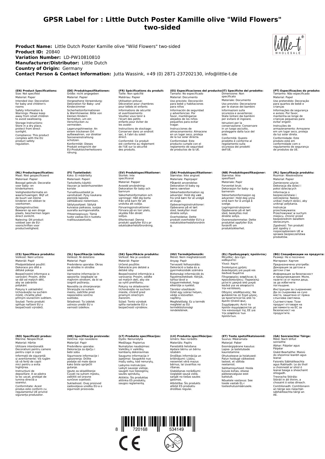 Little Dutch Poster Kamille oliv "Wild Flowers" zweiseitig