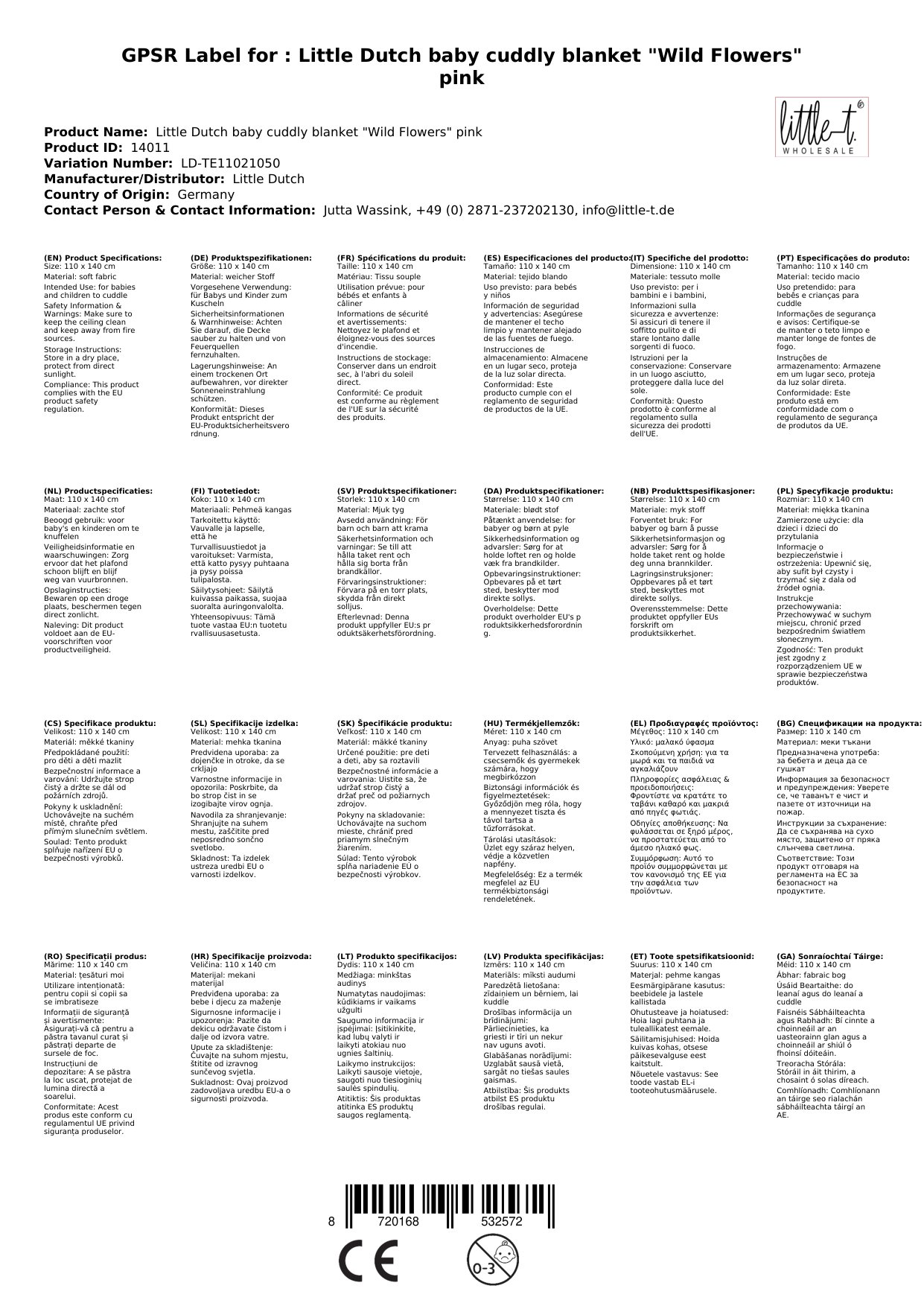Little Dutch Baby Kuscheldecke "Wild Flowers" rosa, Größe: 110 x 140 cm