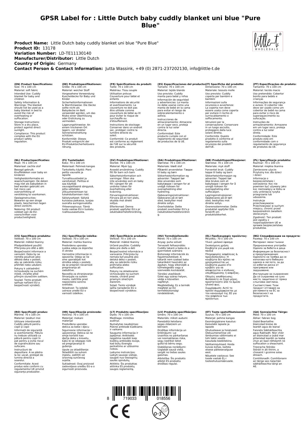 Little Dutch Baby Kuscheldecke uni blau "Pure Blue", Größe: 70 x 100 cm