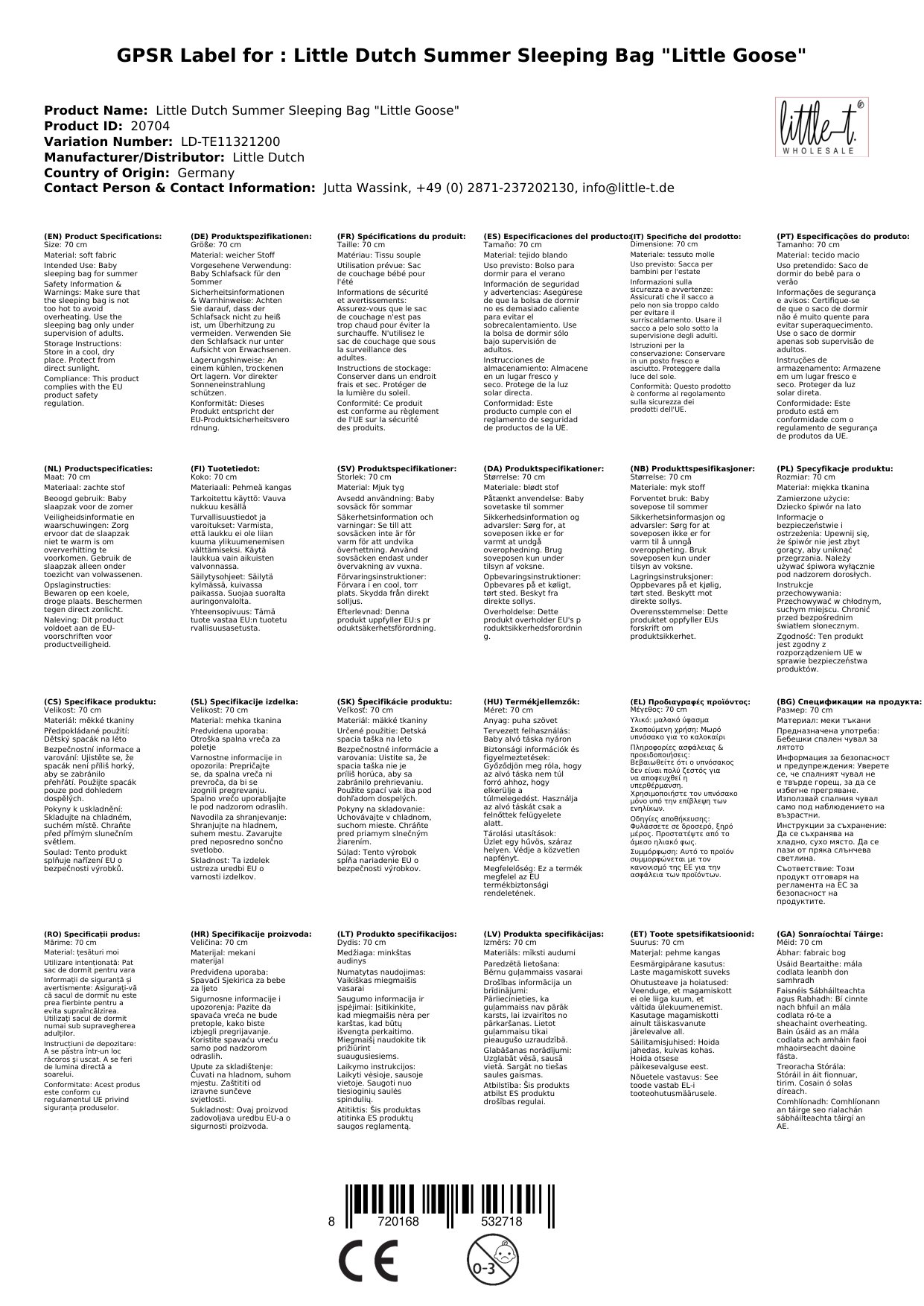 Hier zeigen wir Ihnen einen wundervollen Baby Schlafsack für den Sommer von Little Dutch aus den Niederlanden. Er besticht gleichermaßen durch seine Verarbeitung und das Material. Der Hersteller verwendet einen weichen Stoff, der der zarten Baby- und Kinderhaut schmeichelt.