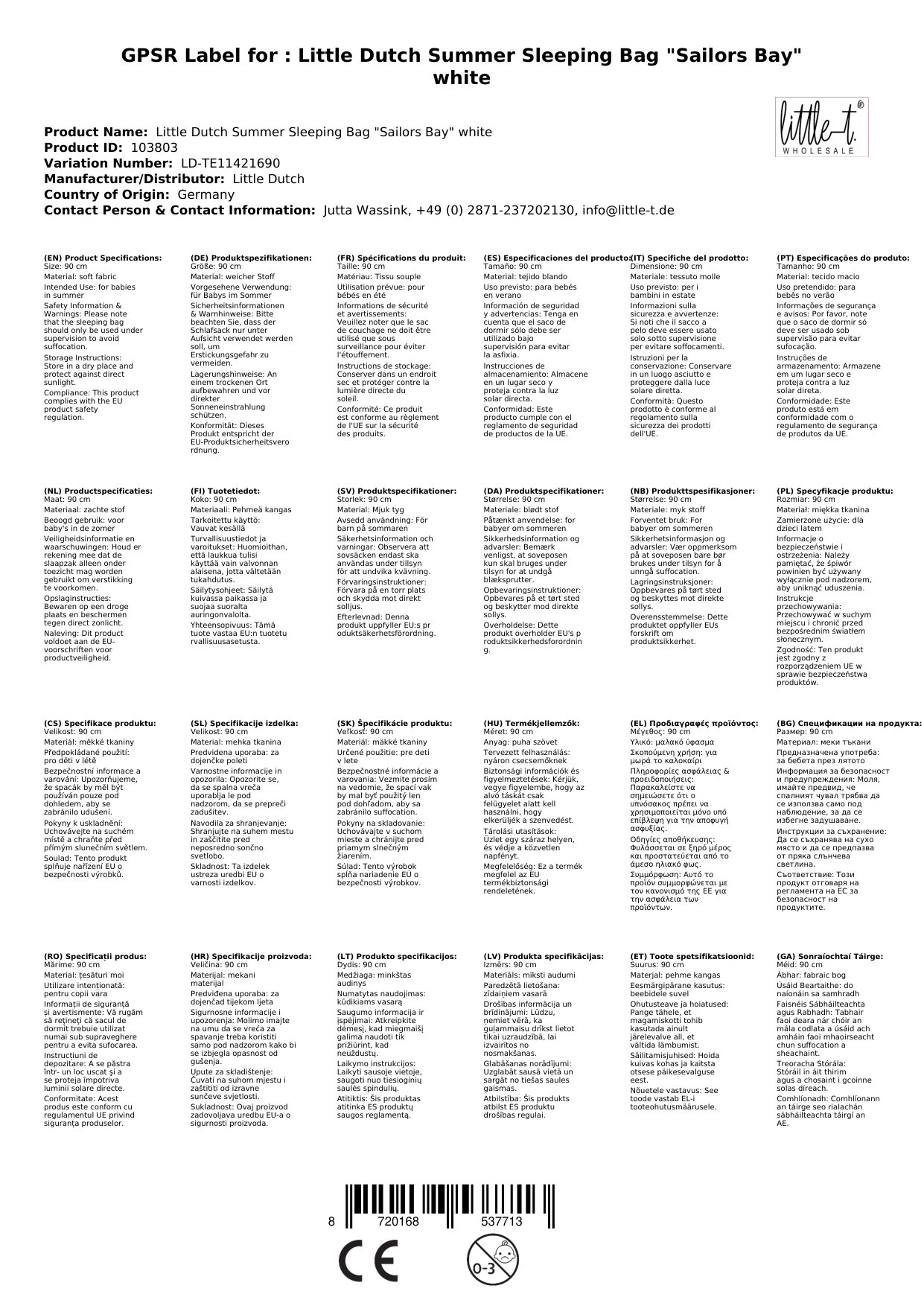 Little Dutch Sommer Schlafsack "Sailors Bay" weiß, Größe: 90 cm