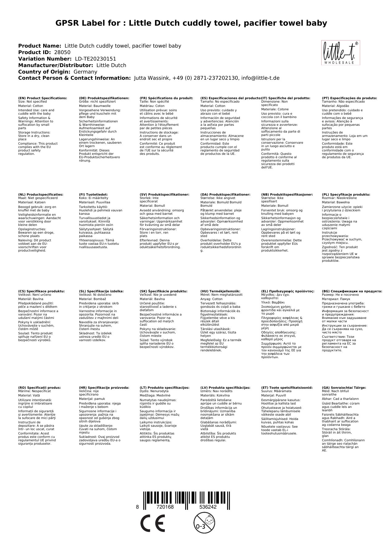 - Qualitätsprodukt: Die Little Dutch Pflege- und Kuscheltücher sind CE-gekennzeichnet und entsprechen den europäischen Richtlinien zur Produktsicherheit.