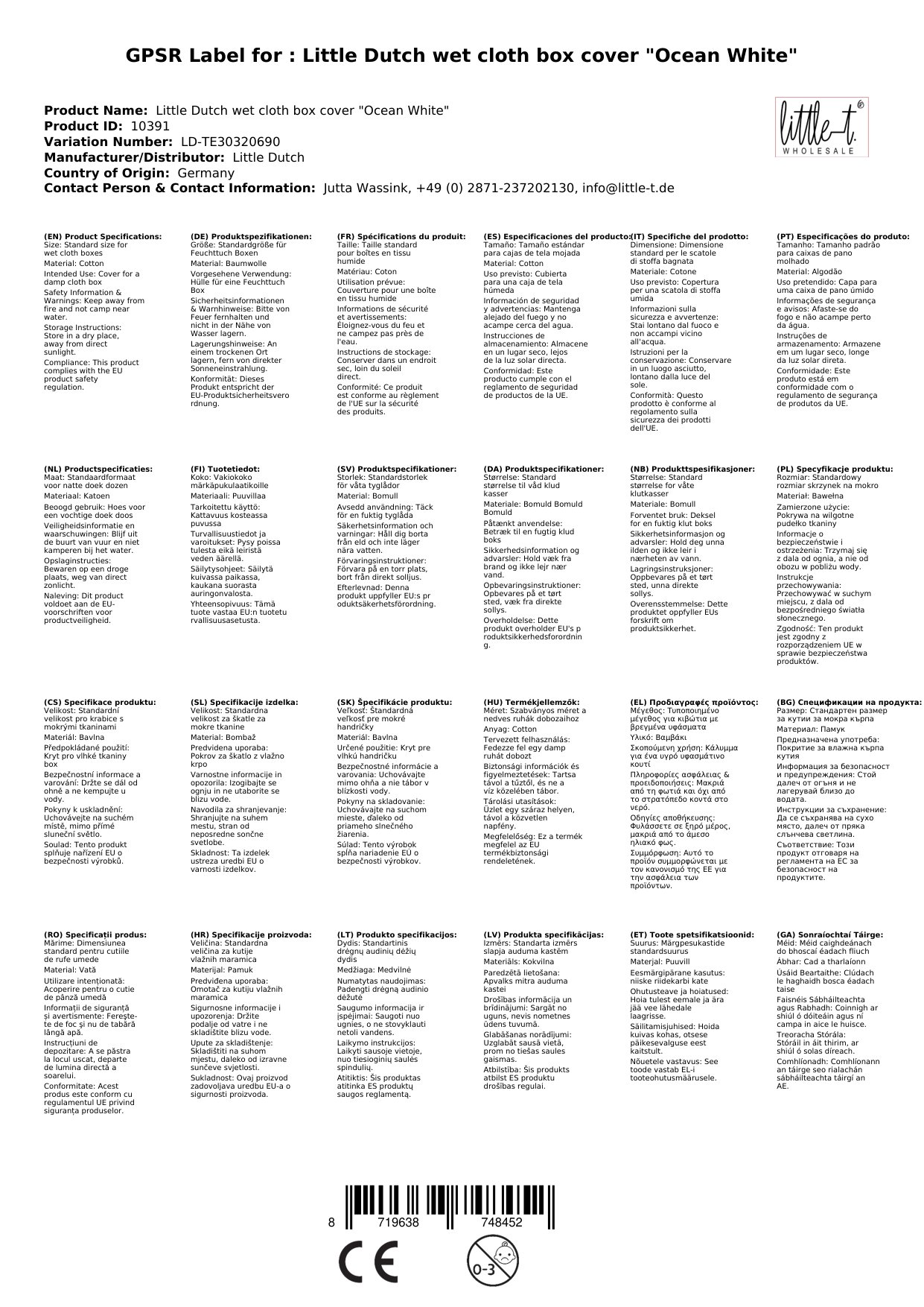 Little Dutch Feuchttuch Box Bezug "Ocean White"