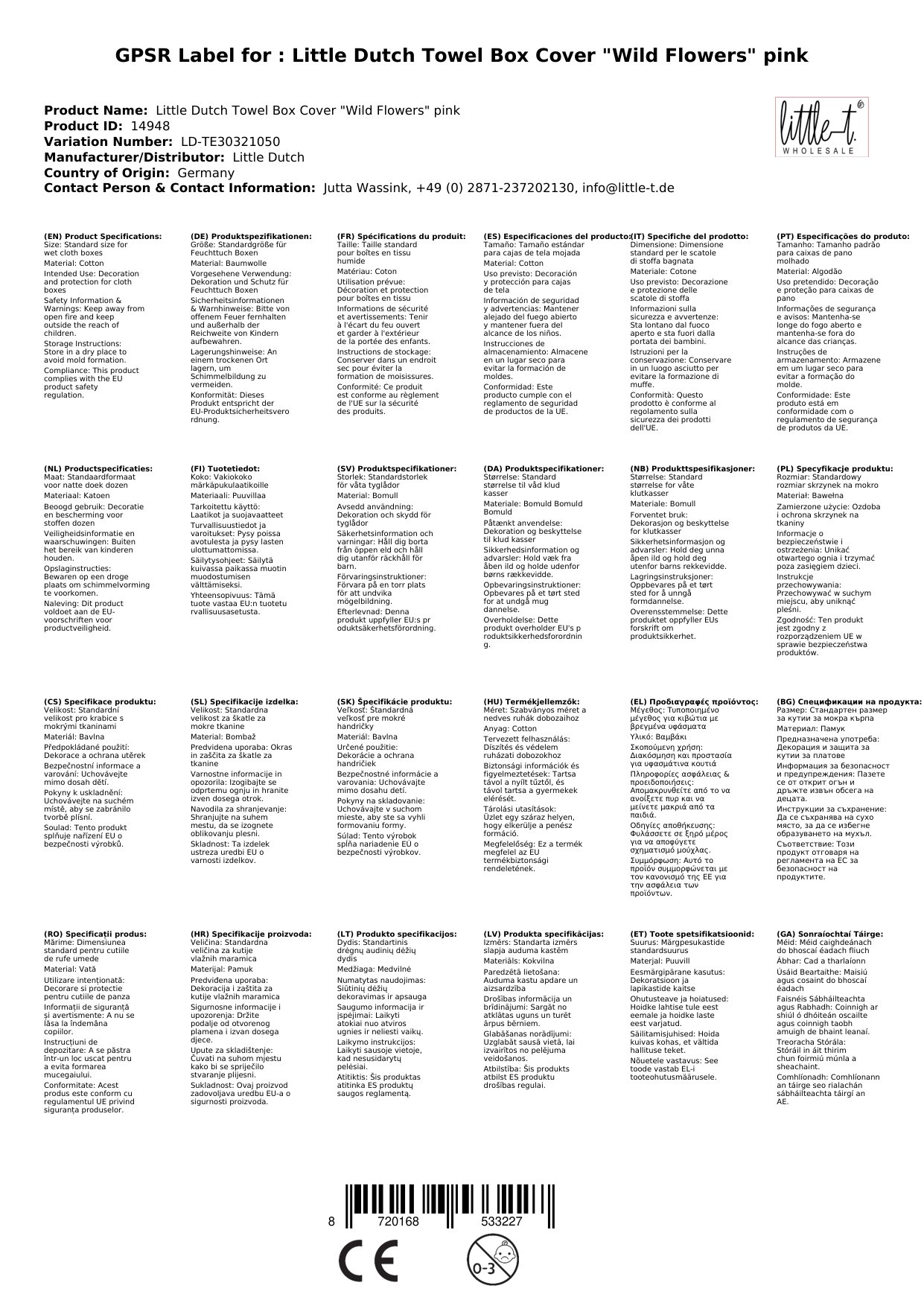 Hier zeigen wir Ihnen einen traumhaften Bezug von Little Dutch für eine Feuchttücher Box. Er ist so traumhaft, weil er aus besonders weicher Baumwolle gewebt ist. Zudem ist er mit einem hübschen Rand veredelt. Durch den Bezug können die Feuchttücher überall sichtbar platziert werden und sehen dadurch noch schön und dekorativ aus.