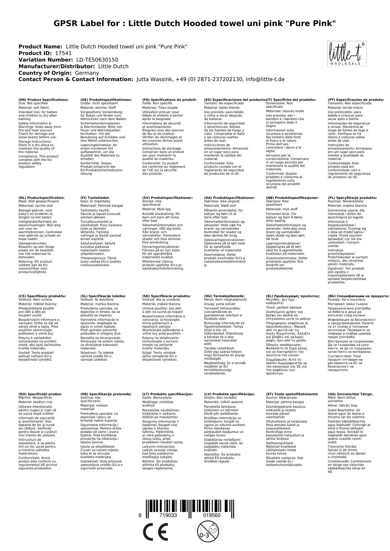 In diesem Kapuzenhandtuch hat es Ihr Baby nach dem Bad herrlich kuschelig und mollig warm. Sie können es übrigens auch als Umschlagtuch zum Pucken benutzen. Ein Kapuzenhandtuch ist ein sehr beliebtes Geschenk zur Geburt. Es gibt viele passende Textilien von Little Dutch, mit denen Sie Ihr Babyzimmer ausstatten können - von B wie Bettnest bis W wie Wandlampe. Einige Empfehlungen zeigen wir Ihnen unterhalb der Produktbeschreibung. Oder lassen Sie sich doch vom großen Little Dutch Markenshop inspirieren - Sie finden ihn unter 'mehr Markenshops' in der oberen Navigationszeile.