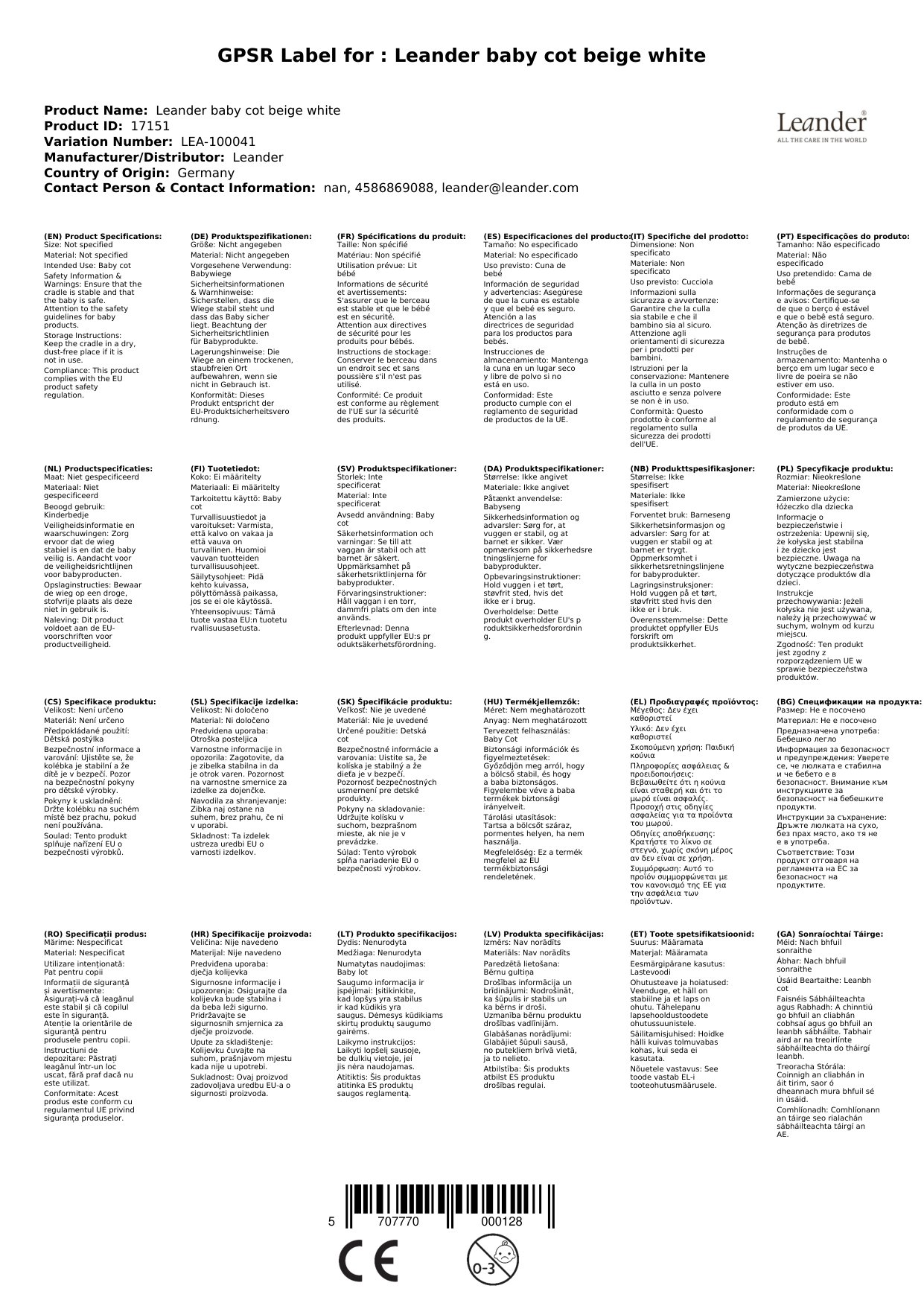 Fakten Leander Babywiege