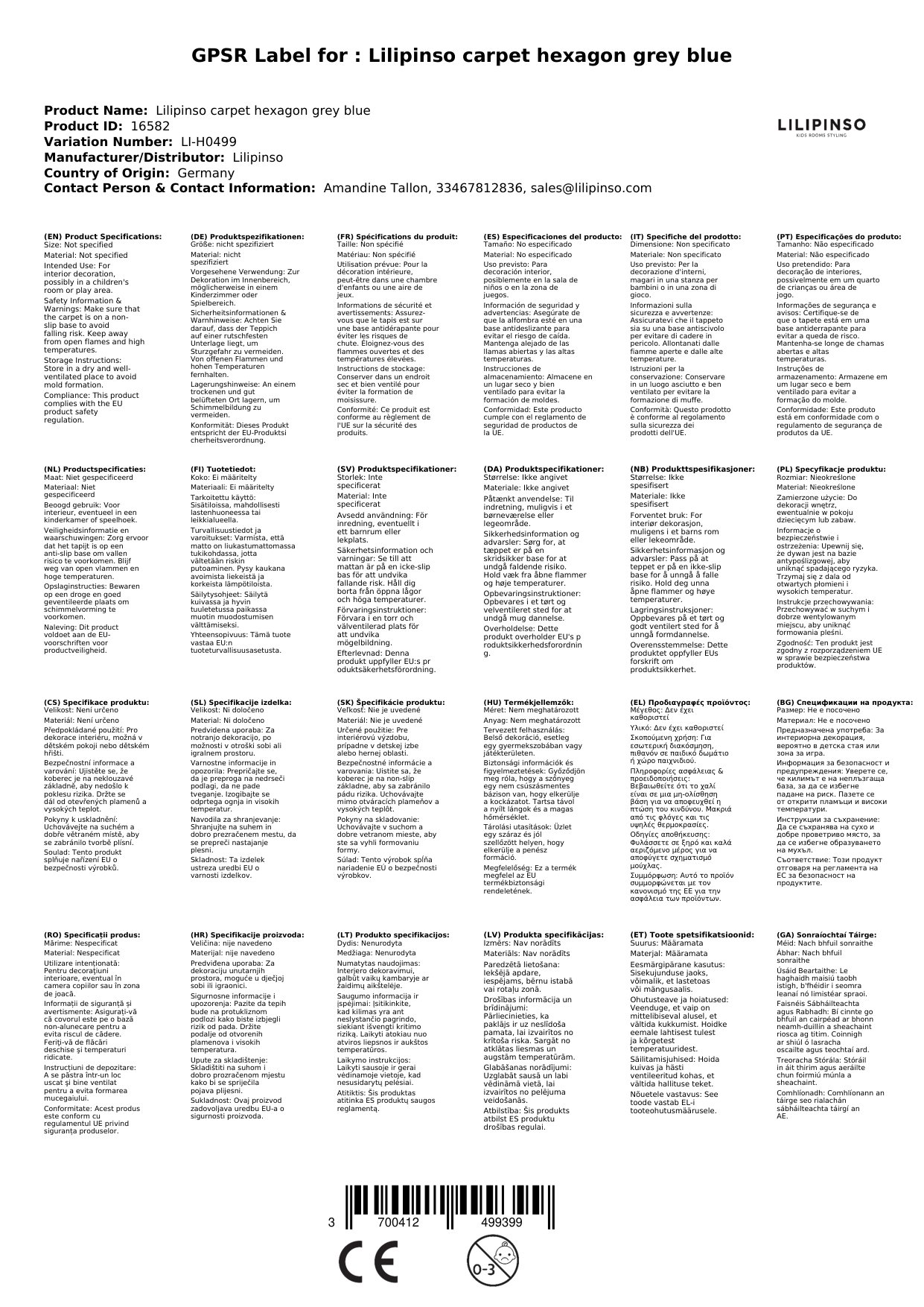 Der Teppich wird für Sie in Frankreich bei Lilipinso bestellt, wenn er bei uns nicht vorrätig ist. Wir verpacken ihn liebevoll und sorgfältig für Sie und lassen Sie mittels einer Mail wissen, sobald das Paket unser Lager verlässt.