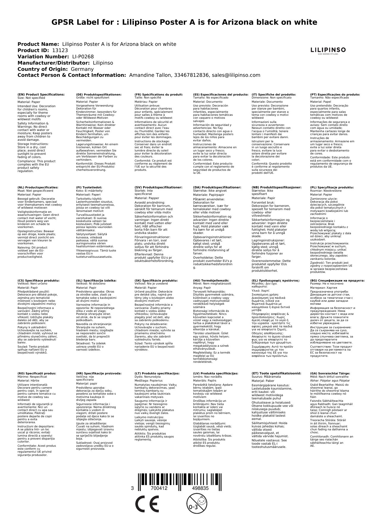 Das Poster wird für Sie in Frankreich bei Lilipinso bestellt, wenn es bei uns nicht vorrätig ist. Wir verpacken es liebevoll für Sie und lassen Sie mittels einer Mail wissen, sobald das Paket unser Lager verlässt.