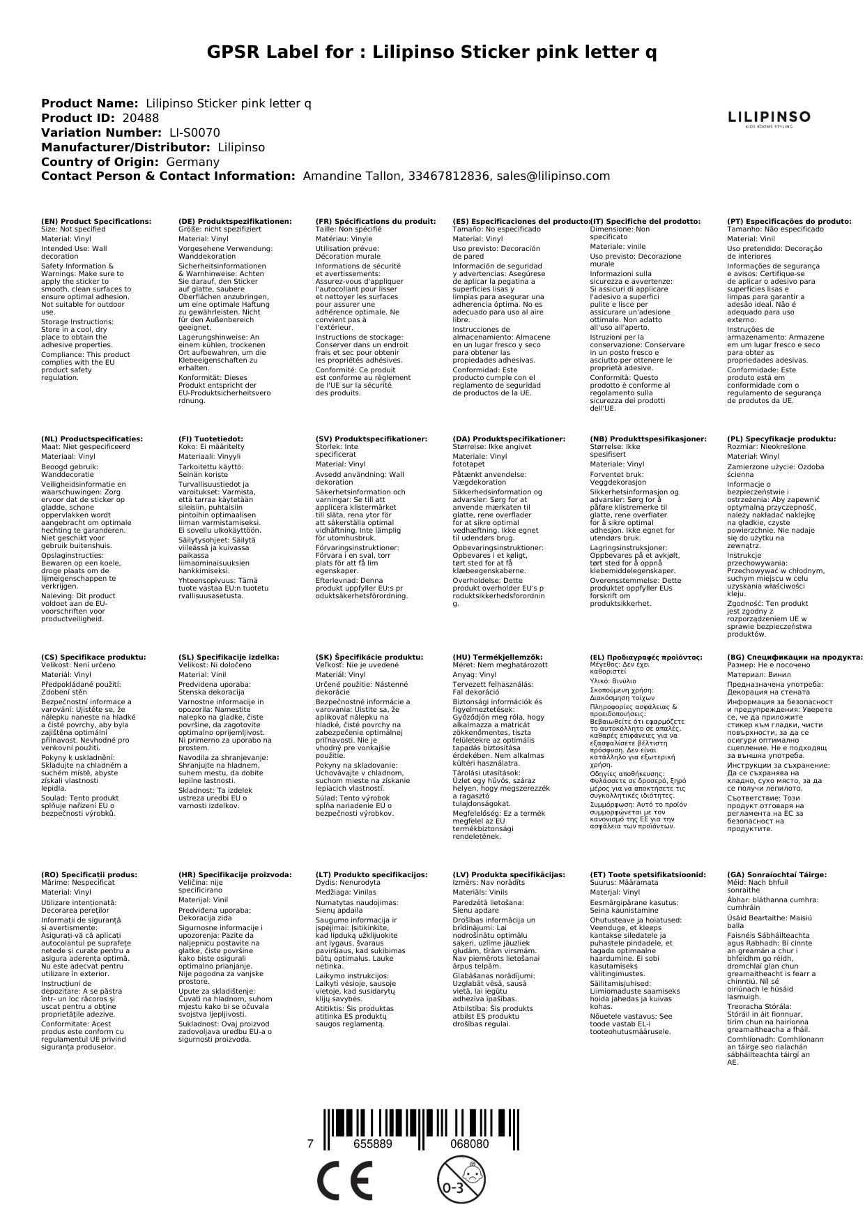| hier sehen sie den wandsticker buchstabe 'q' von lilipinso in rosa. eine schöne dekorationsidee. schreiben sie ihren namen oder irgendetwas anderes auf wand, möbel oder scheibe. alle buchstaben des alphabetes sind unterschiedlich gestaltet sodass sie bei mehreren buchstaben ein schönes und individuelles gesamtbild erhalten. aber auch als einzelobjekt sind diese zeichen eine schöne idee. aus dem alphabet sind alle buchstaben sowohl in rosa als auch blau hier im internetladen erhältlich. | | - vinyl - 1 buchstabe - ca. 9 x 10 cm |