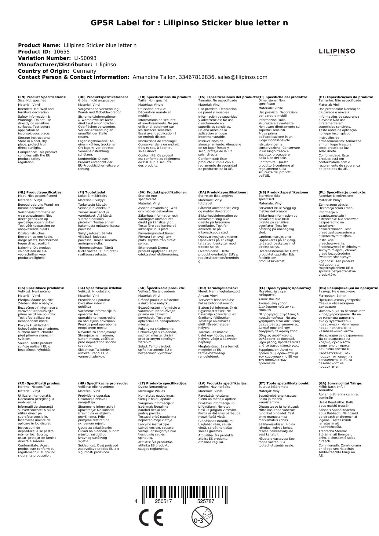 | hier sehen sie den wandsticker buchstabe 'n' von lilipinso in blau. eine schöne dekorationsidee. schreiben sie ihren namen oder irgendetwas anderes auf wand, möbel oder scheibe. alle buchstaben des alphabetes sind unterschiedlich gestaltet sodass sie bei mehreren buchstaben ein schönes und individuelles gesamtbild erhalten. aber auch als einzelobjekt sind diese zeichen eine schöne idee. aus dem alphabet sind alle buchstaben sowohl in rosa als auch blau hier im internetladen erhältlich. | | - vinyl - 1 buchstabe - ca. 9 x 10 cm |