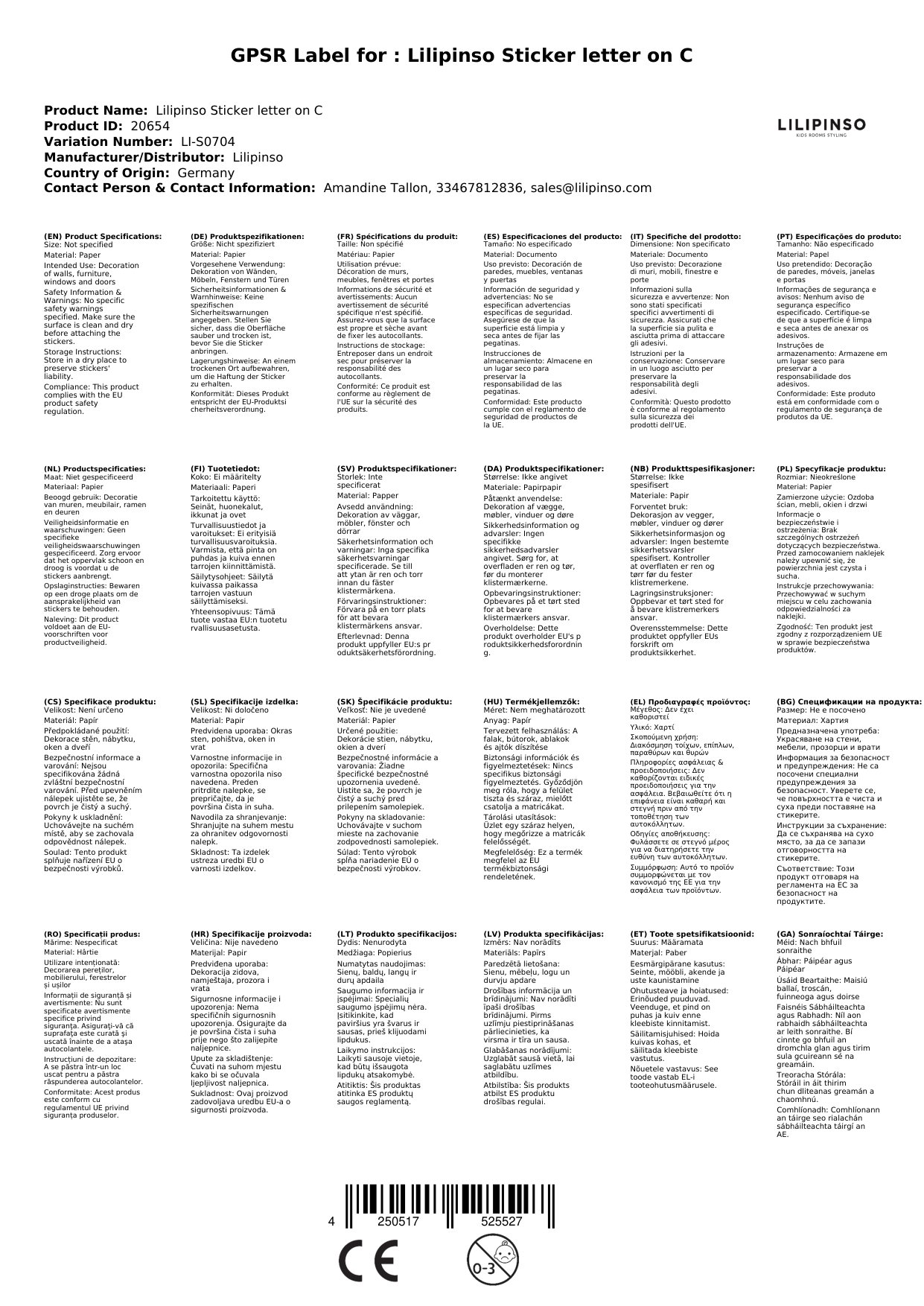 Der Sticker wird für Sie in Frankreich bei Lilipinso bestellt, wenn er bei uns nicht auf Lager ist.