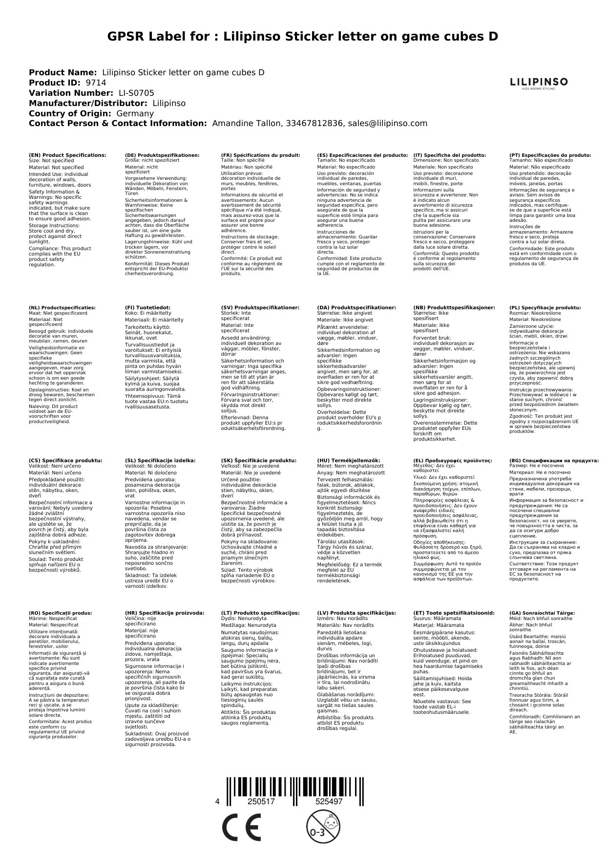 Der Sticker wird für Sie in Frankreich bei Lilipinso bestellt, wenn er bei uns nicht auf Lager ist.