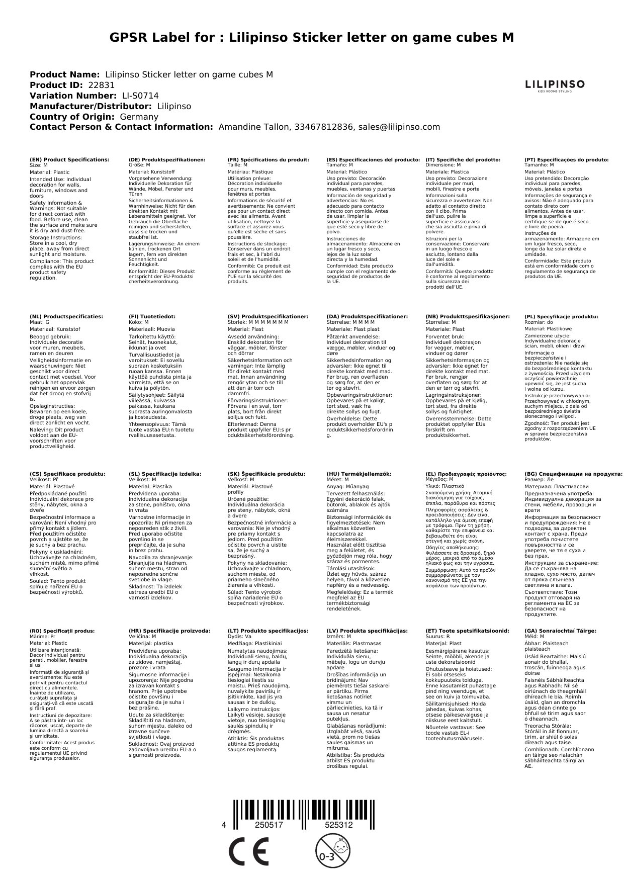 Stellen Sie eine Frage, um mehr über das Produkt zu erfahrenDieser Buchstaben Sticker von Lilipinso ist eine schöne Möglichkeit einer individuellen Dekoration. Schreiben Sie, was Sie wollen und wo Sie wollen. Auf Wände, Möbel, Fenster, Türen oder anderswo.