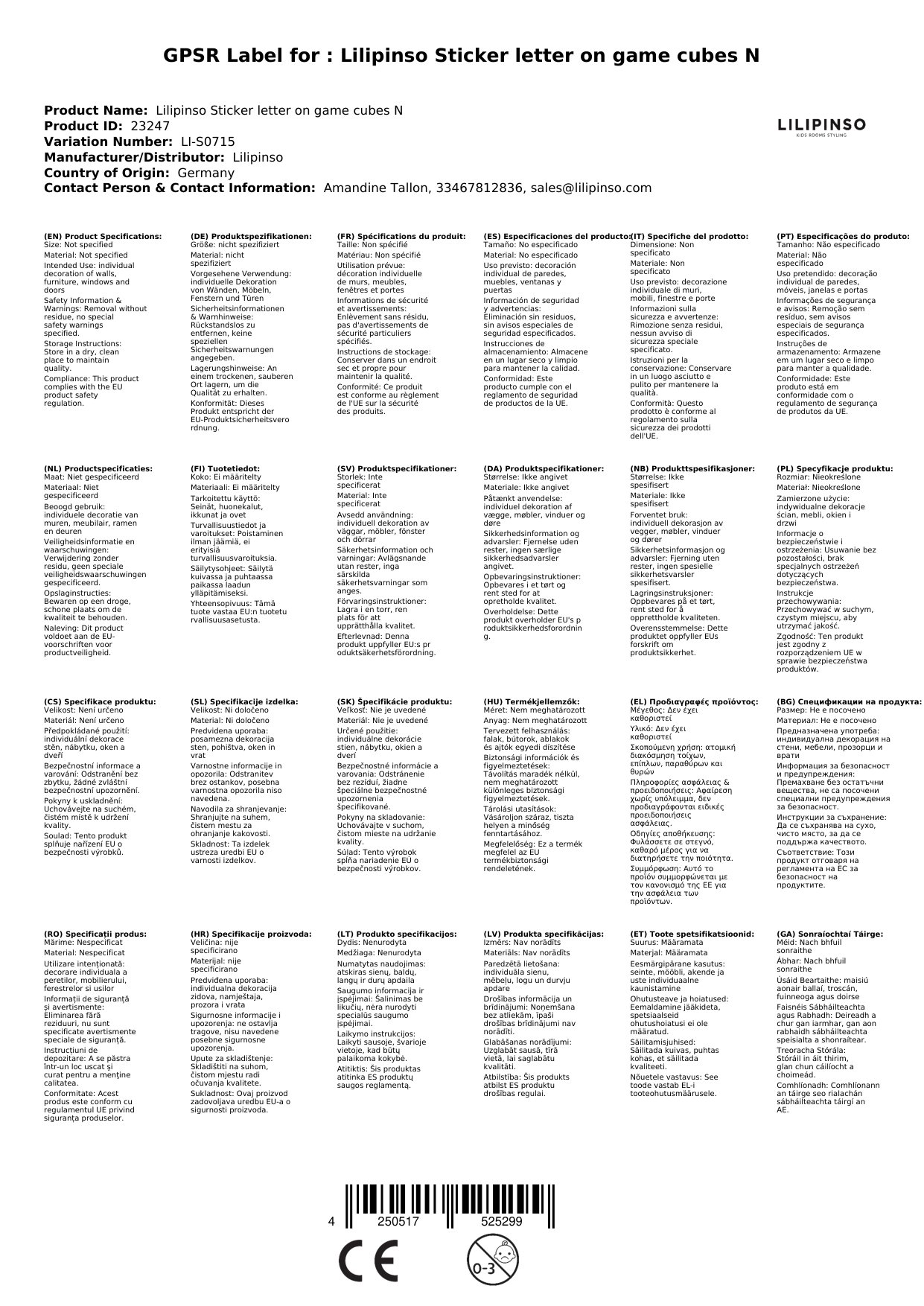 Der Sticker wird für Sie in Frankreich bei Lilipinso bestellt, wenn er bei uns nicht auf Lager ist.