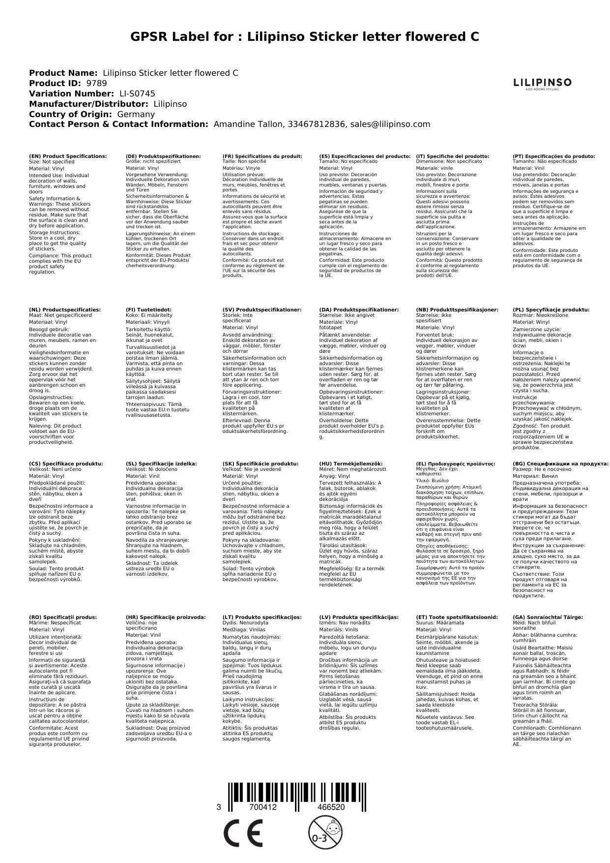 Der Sticker wird für Sie in Frankreich bei Lilipinso bestellt, wenn er bei uns nicht auf Lager ist.