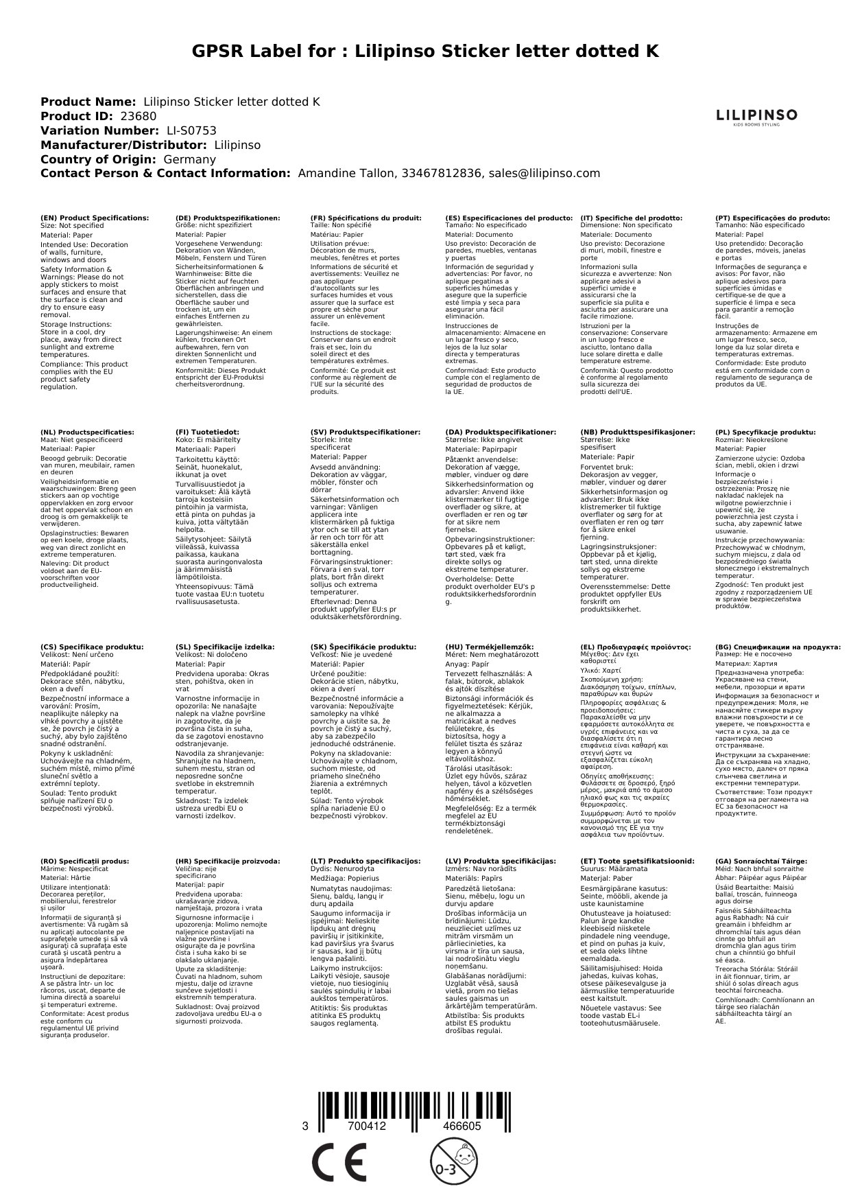 Der Sticker wird für Sie in Frankreich bei Lilipinso bestellt, wenn er bei uns nicht auf Lager ist.