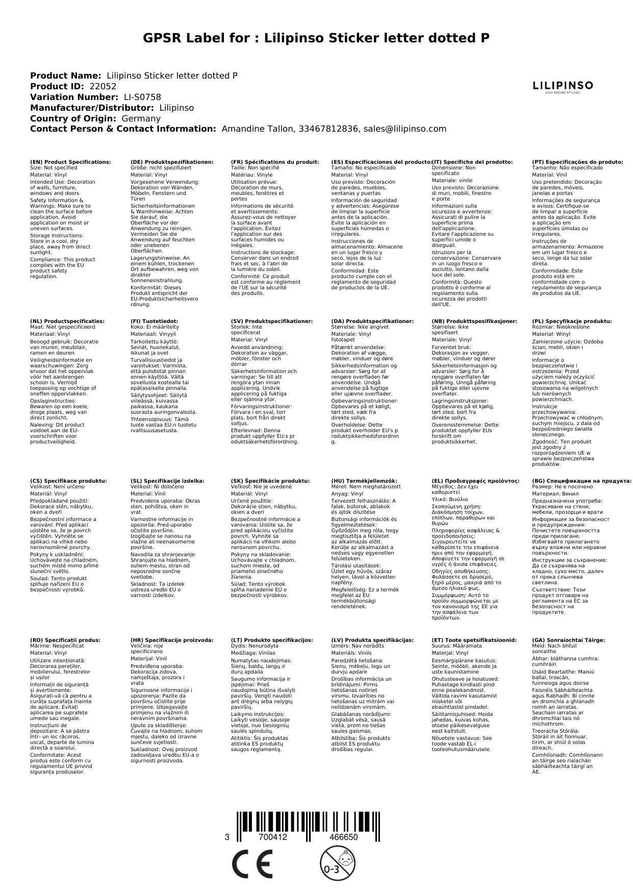 Stellen Sie eine Frage, um mehr über das Produkt zu erfahrenDieser Buchstaben Sticker von Lilipinso ist eine schöne Möglichkeit einer individuellen Dekoration. Schreiben Sie, was Sie wollen und wo Sie wollen. Auf Wände, Möbel, Fenster, Türen oder anderswo.