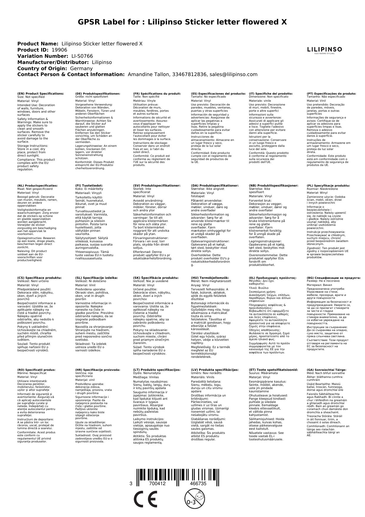 Der Sticker wird für Sie in Frankreich bei Lilipinso bestellt, wenn er bei uns nicht auf Lager ist.