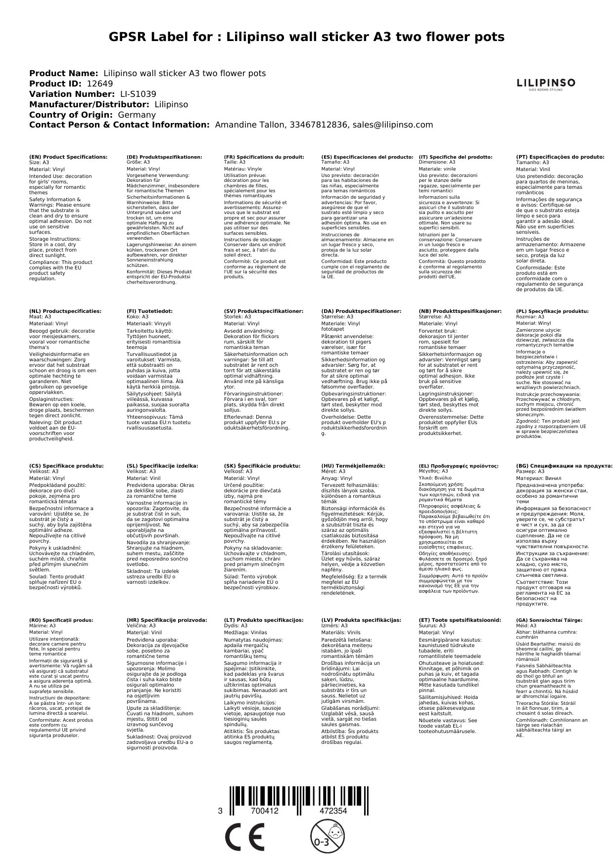 Wir ordern den Stickerbogen für Sie in Frankreich bei Lilipinso, falls er nicht bei uns lagert. Die aktuelle Lieferzeit ist oben neben den Produktfotos angegeben.