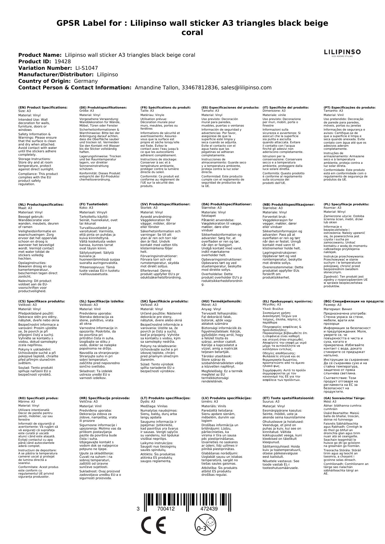 Wir ordern den Stickerbogen für Sie in Frankreich bei Lilipinso, falls er nicht bei uns lagert. Die aktuelle Lieferzeit ist oben neben den Produktfotos angegeben.
