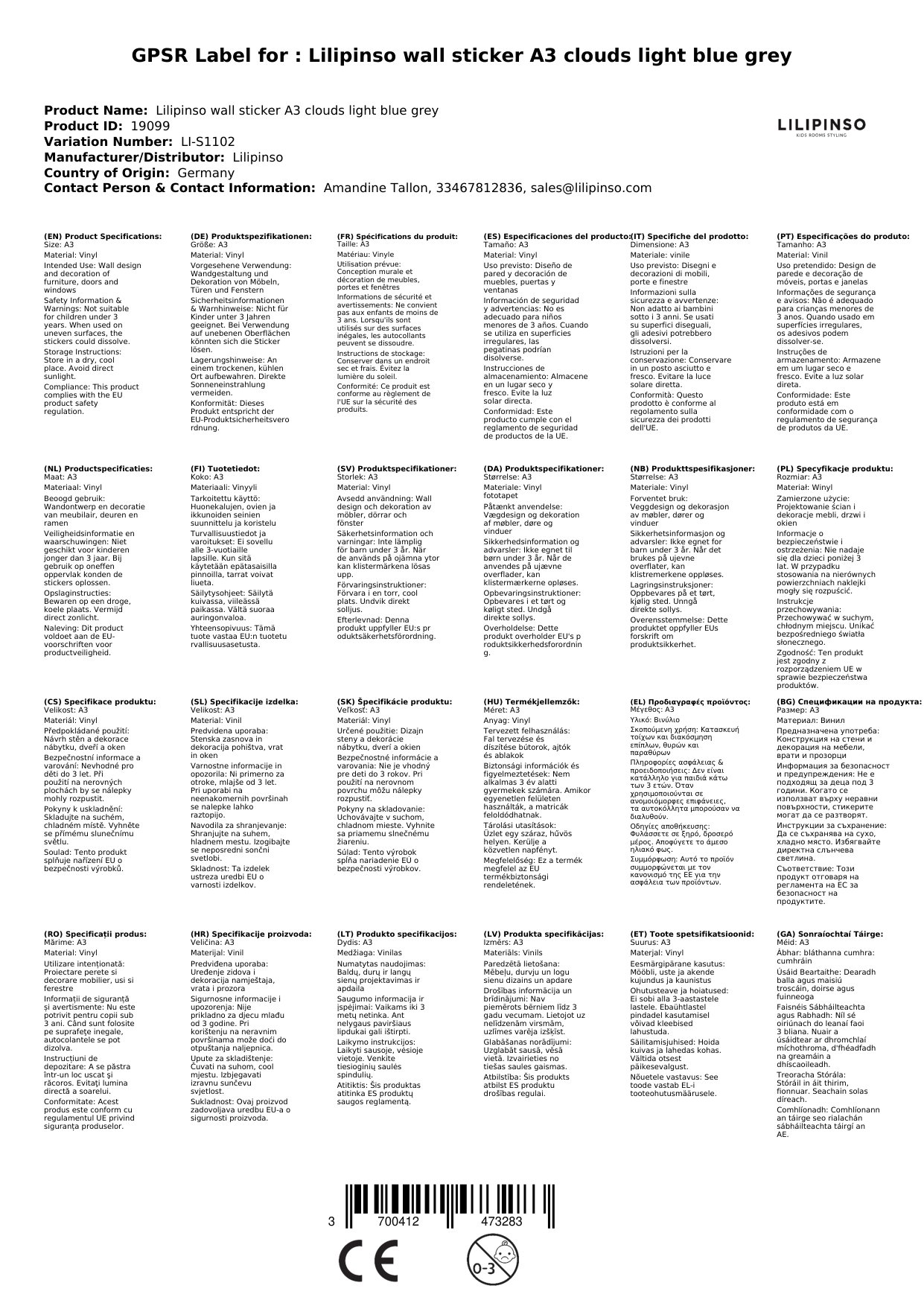Wir ordern den Stickerbogen für Sie in Frankreich bei Lilipinso, falls er nicht bei uns lagert. Die aktuelle Lieferzeit ist oben neben den Produktfotos angegeben.