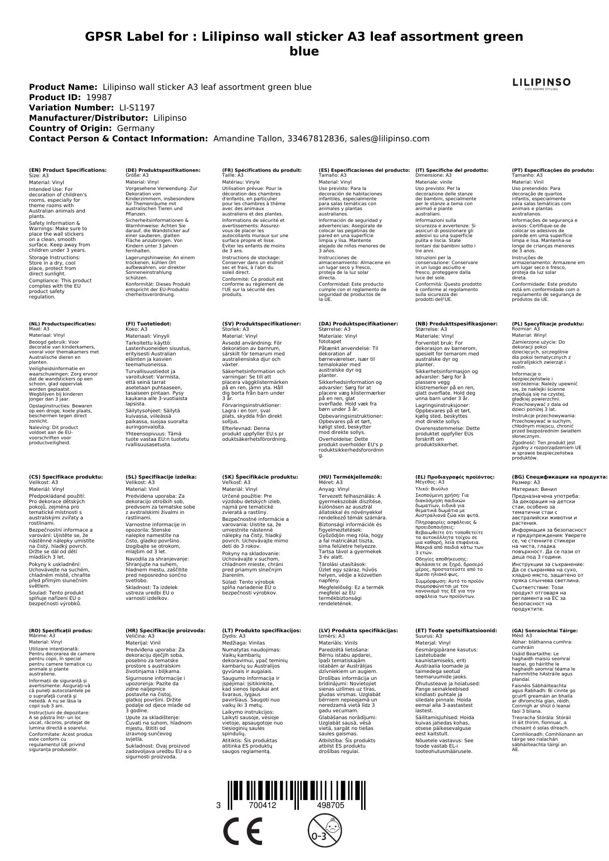 Die Sticker werden für Sie in Frankreich bei Lilipinso bestellt, wenn sie bei uns nicht vorrätig sind. Wir verpacken sie liebevoll für Sie und lassen Sie mittels einer Mail wissen, sobald das Paket unser Lager verlässt.