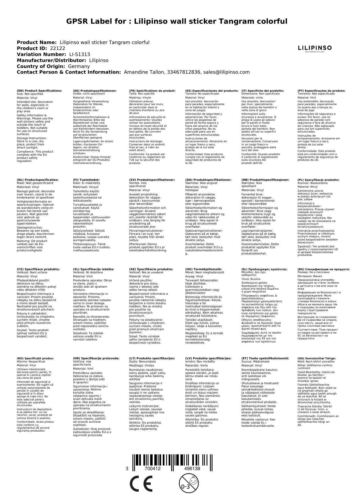 Die Sticker werden für Sie in Frankreich bei Lilipinso bestellt, wenn sie bei uns nicht vorrätig sind. Wir verpacken sie liebevoll für Sie und lassen Sie mittels einer Mail wissen, sobald das Paket unser Lager verlässt.