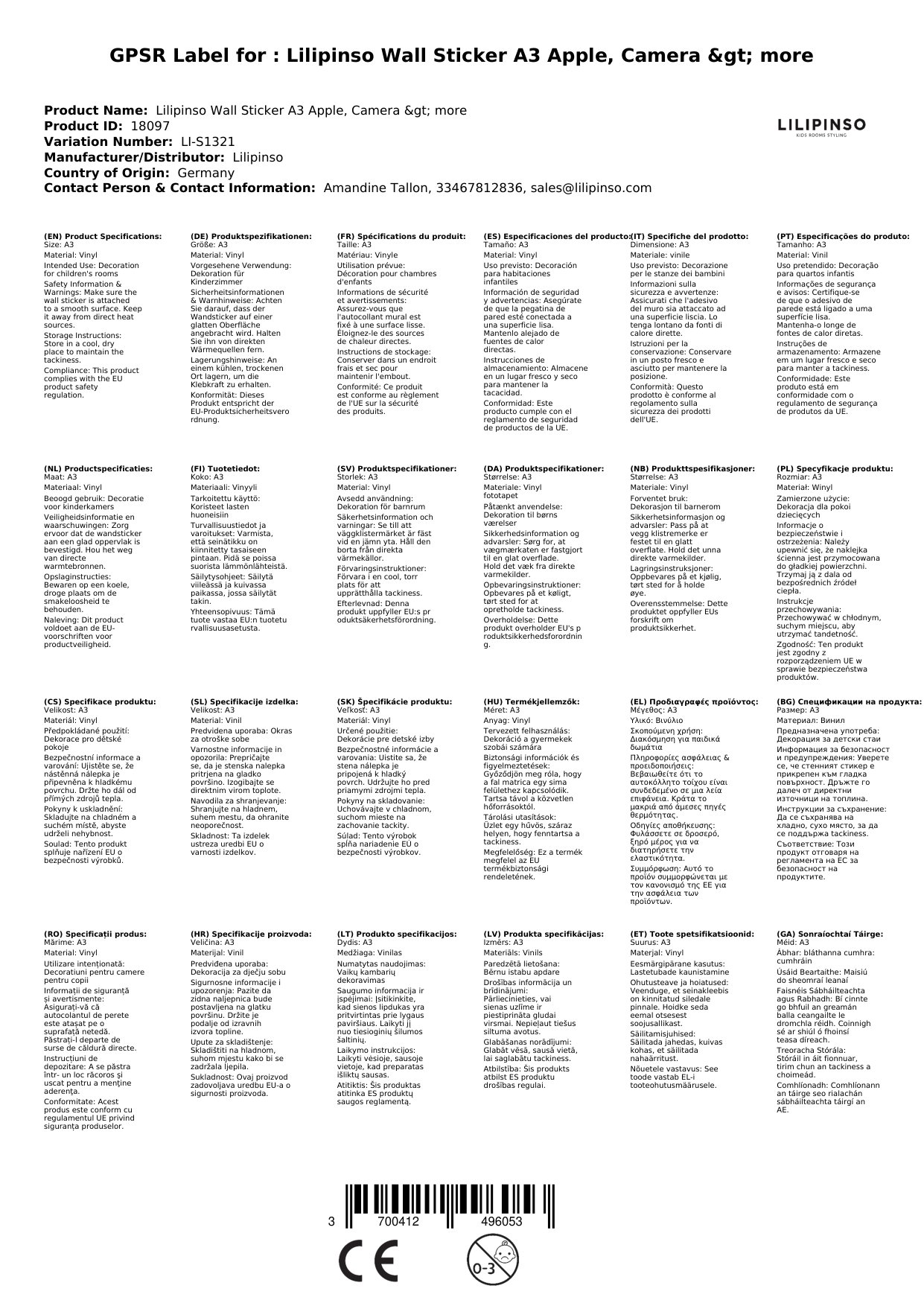 Lilipinso Wandsticker A3 Apfel, Kamera & mehr