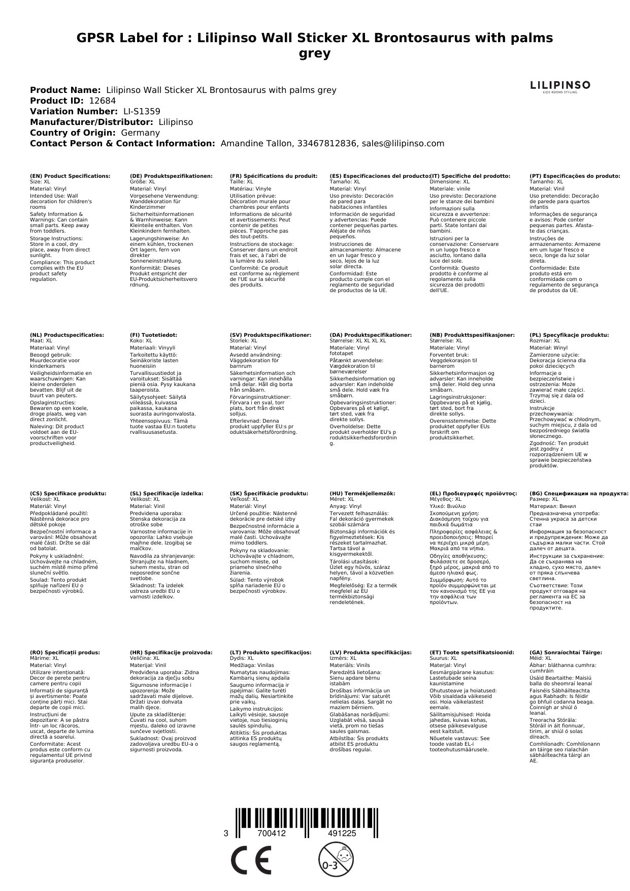 Die Sticker werden für Sie in Frankreich bei Lilipinso bestellt, wenn sie bei uns nicht vorrätig sind. Wir verpacken sie liebevoll für Sie und lassen Sie mittels einer Mail wissen, sobald das Paket unser Lager verlässt.