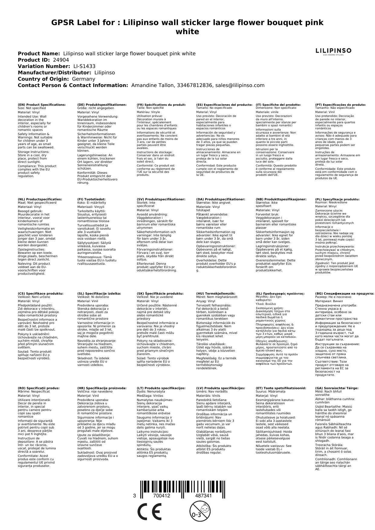 Die Wandsticker werden für Sie in Frankreich bei Lilipinso bestellt, wenn sie bei uns nicht vorrätig sind. Wir verpacken sie liebevoll und sorgfältig für Sie und lassen Sie mittels einer Mail wissen, sobald das Päckchen unser Lager verlässt.