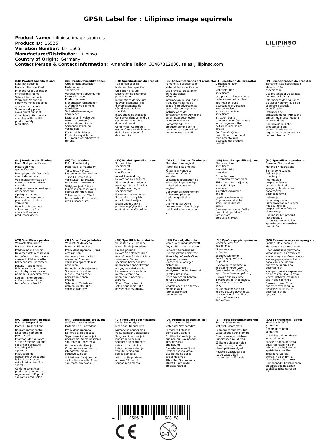 Das Bild wird für Sie in Frankreich bei Lilipinso bestellt, wenn es bei uns nicht vorrätig ist. Die aktuelle Lieferzeit ist oben neben den Produktfotos angegeben.