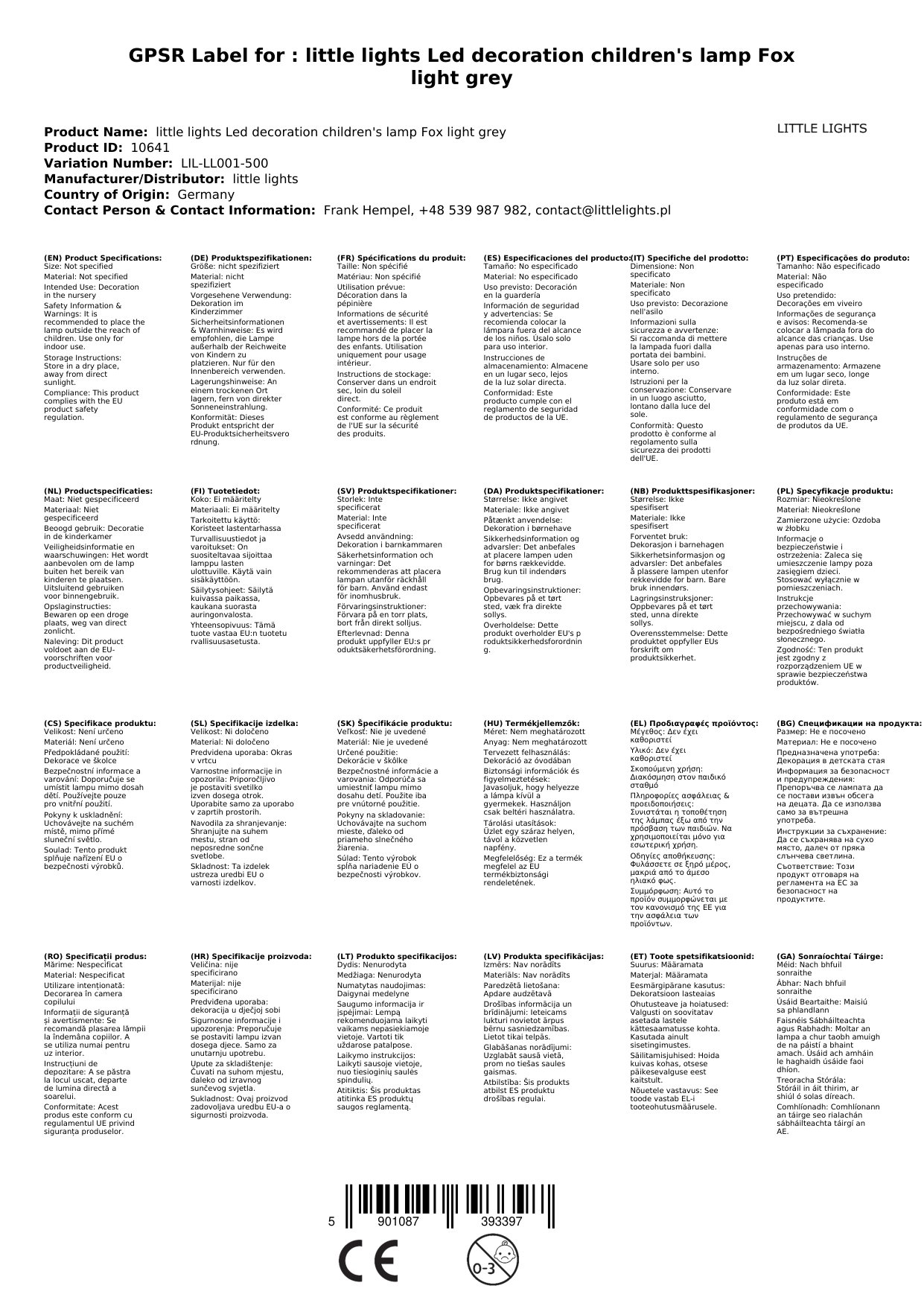 little lights Led Deko Kinderlampe Fuchs hellgrau