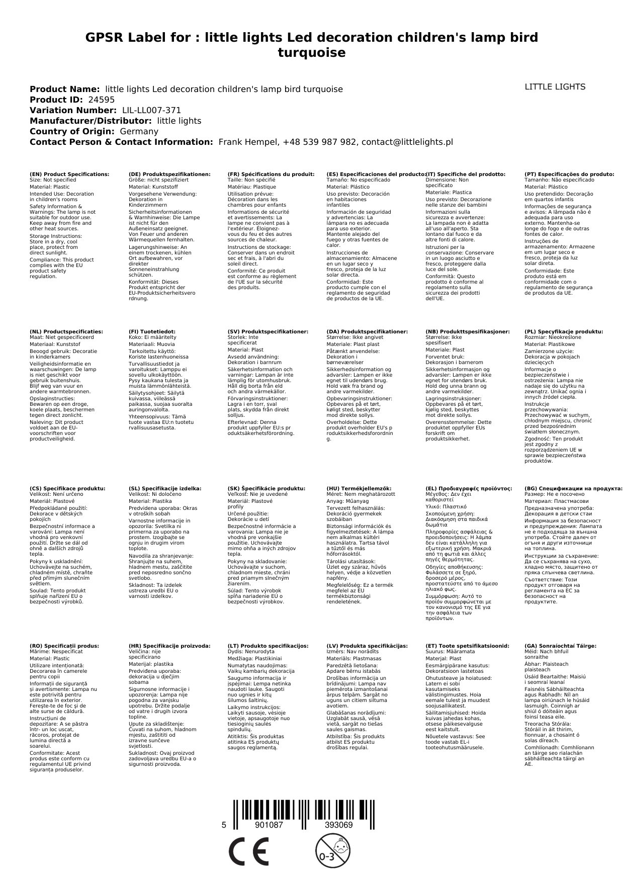little lights Led Deko Kinderlampe Vogel türkis