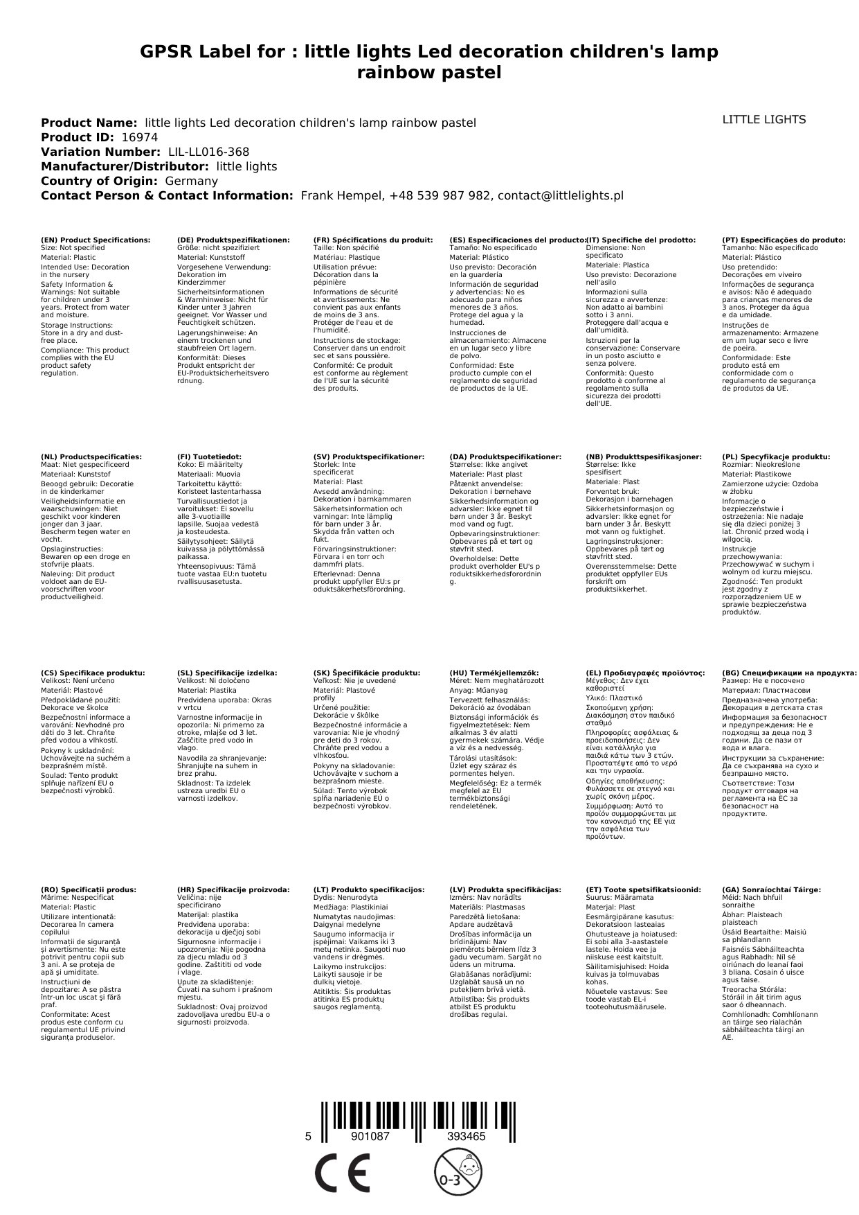 little lights Led Deko Kinderlampe Regenbogen pastell