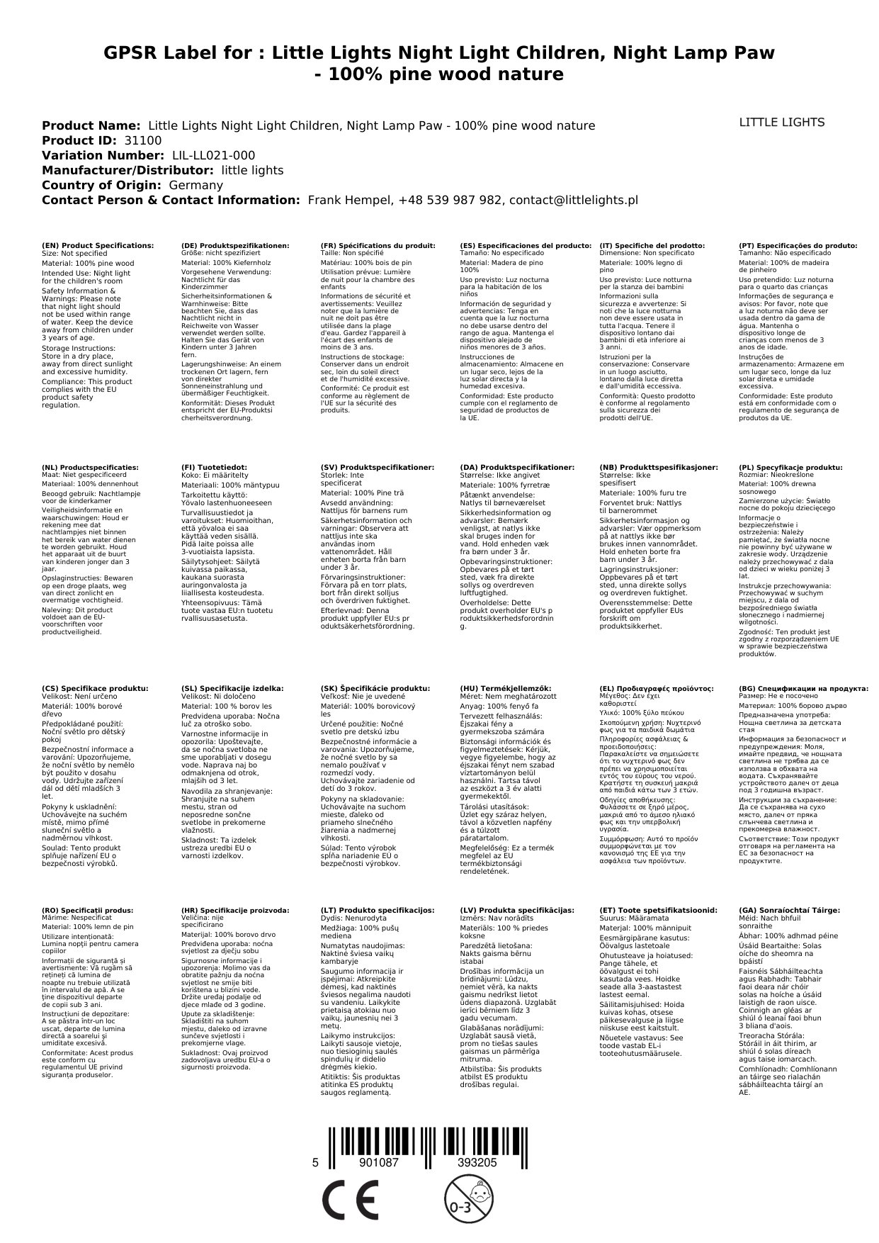 Stellen Sie eine Frage, um mehr über das Produkt zu erfahrenLittle Lights Nachtlicht Kinder, Nachtlampe Pfote - 100% Kiefernholz natur