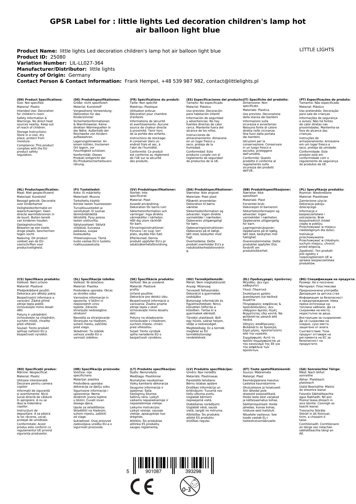 little lights Led Deko Kinderlampe Heissluftballon hellblau