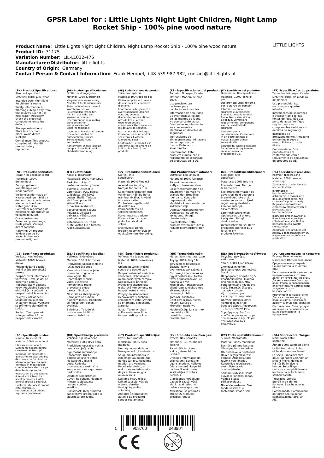 Stellen Sie eine Frage, um mehr über das Produkt zu erfahrenLittle Lights Nachtlicht Kinder, Nachtlampe Raketenschiff - 100% Kiefernholz natur